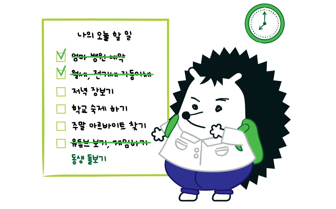 ๋ด๋์ปค, ๊ณ ์ด์ด ์น๊ตฌ ์ค์ ํ๊ต ๊ณต๋ถ, ๊ฐ์กฑ ๊ฐํธ, ์๋ฅด๋ฐ์ดํธ, ์ง์์ผ๊น์ง ํ๋ฃจ์ ๋ค ํด๋ด๋ ํ์์ด ์๋์. ๊ทธ๊ฒ ๋์ฒด ๋ฌด์จ ๊ฐ์๋ฌ๋๊ณ ์? ์กฐ๋ณ๊ณผ์ ํ๋์บ๋ฆฌ ํ๋ ๊ฑฐ๋๊ณ ์? ๋ค ์๋์์. ์ด์ฉ ์ ์์ด n์ธ๋ถ์ ์ถ์ ์ด์๊ฐ๋ ์์ด๋ค์ ์ด์ผ๊ธฐ๊ฑฐ๋ ์.