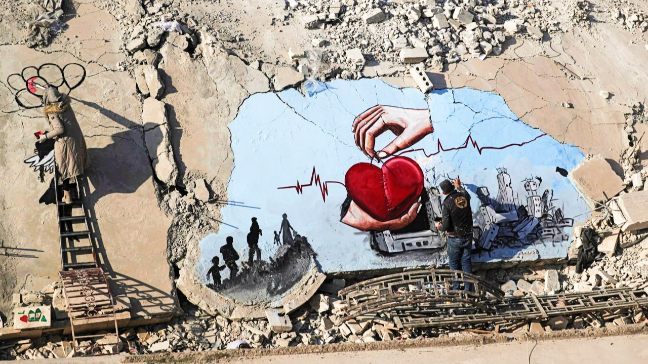 ๋Œ€์ง€์ง„์ด ์ง€๋‚˜๊ฐ„ ์‹œ๋ฆฌ์•„ ์•Œ๋ ˆํฌ์ฃผ ์ง„๋””๋ ˆ์Šค. ํ™”๊ฐ€์˜ ์†๋์—์„œ ๋นจ๊ฐ„ ํ•˜ํŠธ์™€ ํŒŒ๋ž€ ํ•˜๋Š˜์ด ํ”ผ์–ด๋‚ฉ๋‹ˆ๋‹ค. ์ €๊ณณ์ด ๋ฌด๋„ˆ์ง„ ๊ฑด๋ฌผ์ด ์•„๋‹ˆ๋ผ ๊ทธ๋ƒฅ ํ•˜์–€ ๋„ํ™”์ง€์˜€๋‹ค๋ฉด ์–ผ๋งˆ๋‚˜ ์ข‹์„๊นŒ์š”?