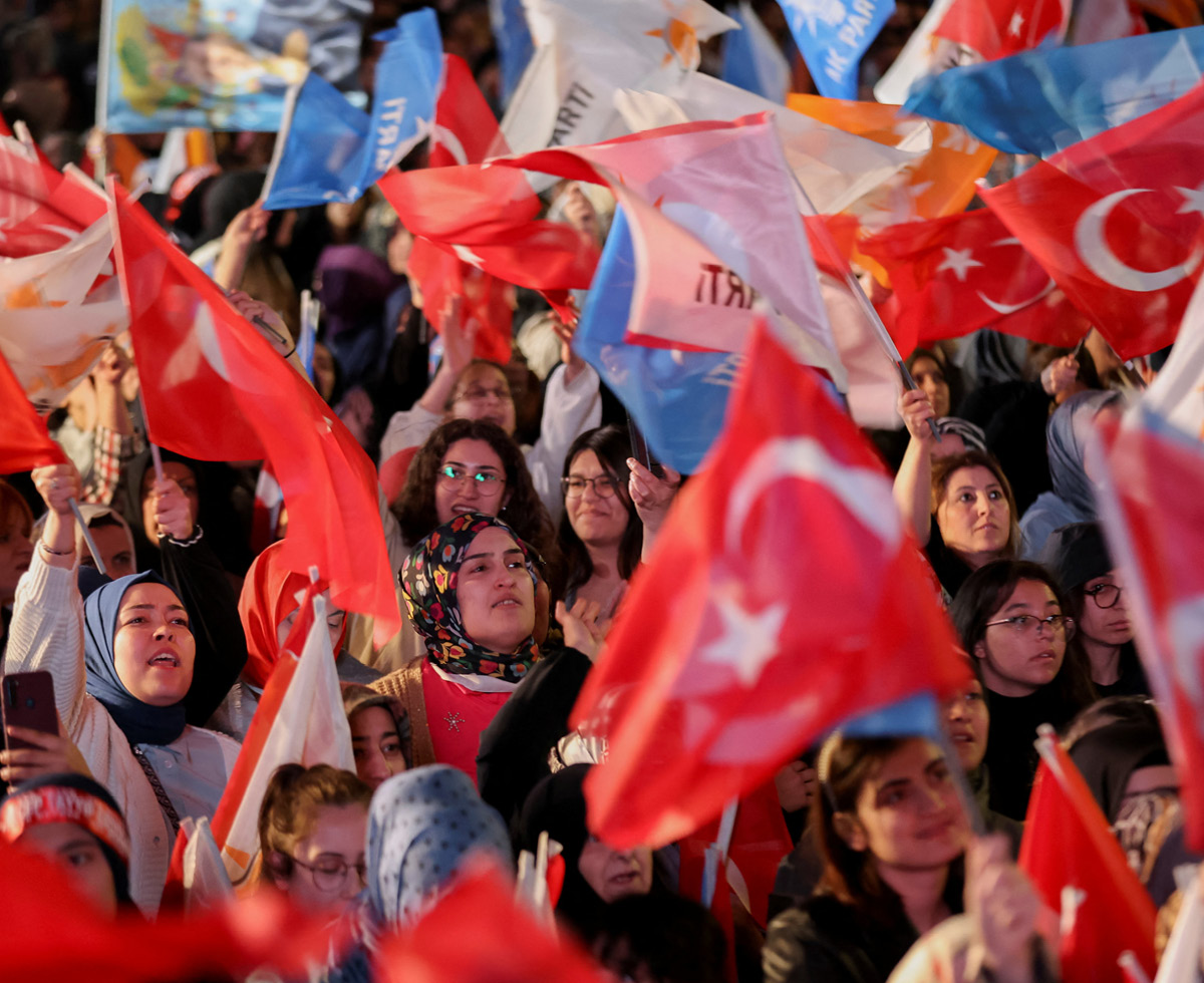 ์—๋ฅด๋„์•ˆ ํŠ€๋ฅดํ‚ค์˜ˆ ๋Œ€ํ†ต๋ น์˜ ์ง€์ง€์ž๋“ค์ด ๊ตญ๊ธฐ๋ฅผ ํ”๋“ค๊ณ  ์žˆ์–ด์š”. ⓒUmit Bektas/Reuters