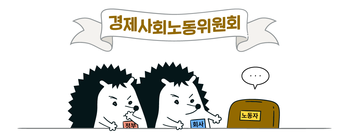 ์•—, ๊ฒฝ์‚ฌ ์กฐ์‹ฌ ๋…ธ๋ž€ ํ‘œ์ง€ํŒ ์œ„์›ํšŒ.. ๐Ÿ˜‡๋Š” ์•„๋‹ˆ๊ณ  '๊ฒฝ์ œ์‚ฌํšŒ๋…ธ๋™์œ„์›ํšŒ'์ธ๋ฐ์š”. ๋…ธ๋™๊ณผ ๊ด€๋ จ๋œ ์ •์ฑ…์„ ํ˜‘์˜ํ•˜๋Š” ๋Œ€ํ†ต๋ น ์ง์† ๊ธฐ๊ตฌ์˜ˆ์š”. ์˜ˆ๋ฅผ ๋“ค๋ฉด ์‚ฐ์—… ์žฌํ•ด๋ฅผ ์ค„์ด๊ธฐ ์œ„ํ•ด ์–ด๋–ป๊ฒŒ ๋…ธ๋ ฅํ•  ๊ฑด์ง€, ํ”Œ๋žซํผ ๋…ธ๋™์ž์˜ ์ฒ˜์šฐ๋ฅผ ์–ด๋–ป๊ฒŒ ๊ฐœ์„ ํ•  ๊ฑด์ง€ ๋“ฑ์„ ์ด์•ผ๊ธฐํ•˜๋Š”๋ฐ์š”. ๋‚˜๋ผ๊ฐ€ ๋…ธ๋™ ์ •์ฑ…์„ ๋‹ค๋ฃจ๊ธฐ ์œ„ํ•ด ๊ณต์‹์ ์œผ๋กœ ๋งˆ๋ จํ•ด ๋‘” ๋Œ€ํ™” ํ†ต๋กœ์˜ˆ์š”. ์—ฌ๊ธฐ์„œ ์–˜๊ธฐ๊ฐ€ ์ž˜ ๋ผ์•ผ, ๋…ธ๋™ ์ •์ฑ…๋„ ์ž˜ ๊ตด๋Ÿฌ๊ฐˆ ์ˆ˜ ์žˆ๋‹ค๊ณ .