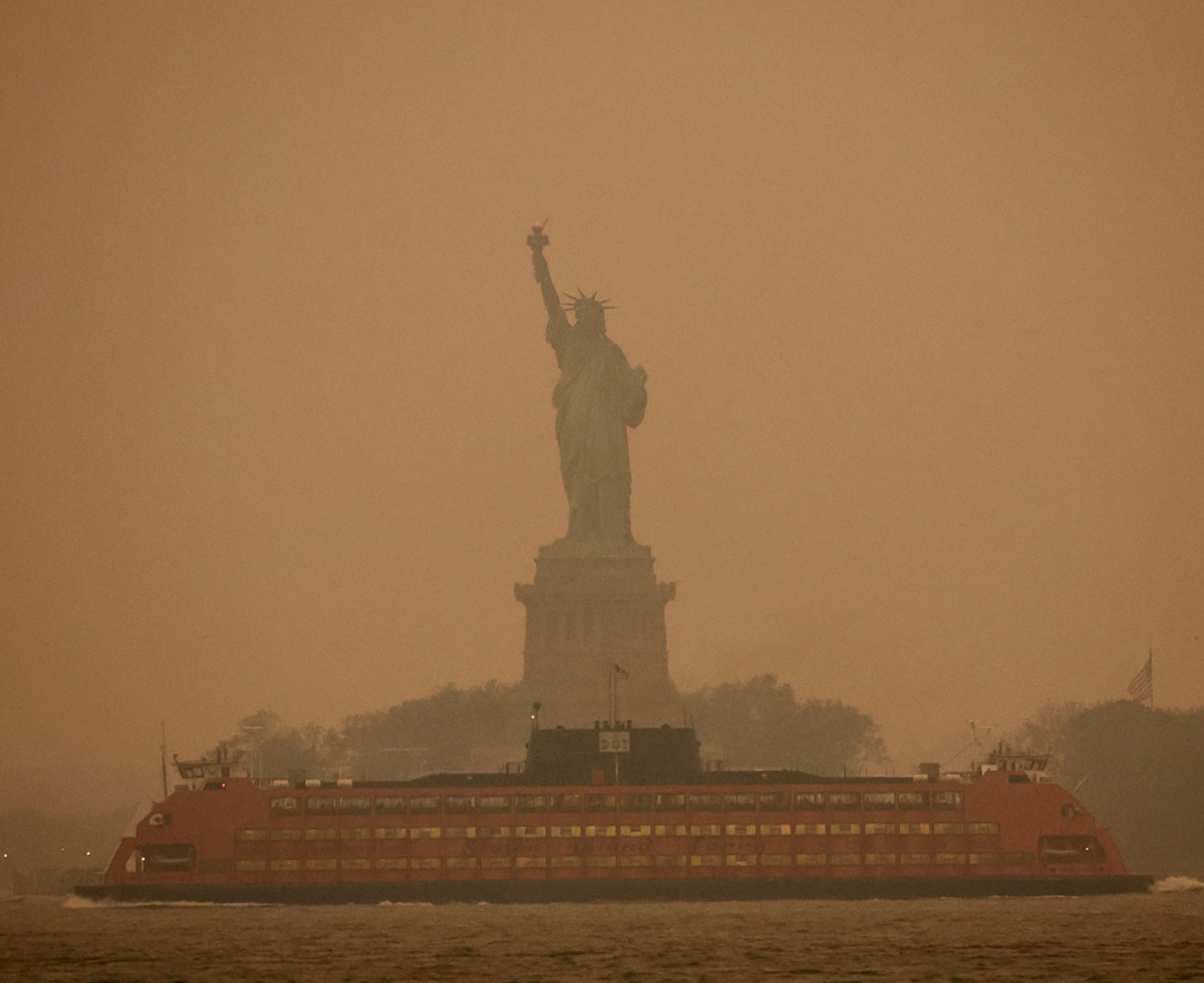 jks ๋‰ด๋‹ˆ์ปค, ์ด๊ฑด ์–ด์ œ(8์ผ) ์ดฌ์˜๋œ ๋ฏธ๊ตญ ๋‰ด์š• ์‚ฌ์ง„์ด์—์š”. ์™œ ์‚ฌ์ง„์— ๋ˆ„๋Ÿฐ ํ•„ํ„ฐ๋ฅผ ์”Œ์› ๋ƒ๊ณ ์š”? ํ•„ํ„ฐ๊ฐ€ ์•„๋‹ˆ๋ผ ์‹ค์ œ ๋ชจ์Šต์„ ๋‹ด์€ ์‚ฌ์ง„์ด์—์š”. ์บ๋‚˜๋‹ค ๋™๋ถ€์—์„œ ๋ฐœ์ƒํ•œ ์‚ฐ๋ถˆ ์—ฐ๊ธฐ๊ฐ€ ๊ตญ๊ฒฝ์„ ๋„˜์–ด ๋ฏธ๊ตญ ๋‰ด์š• ๋“ฑ๊นŒ์ง€ ํผ์กŒ๊ฑฐ๋“ ์š”.