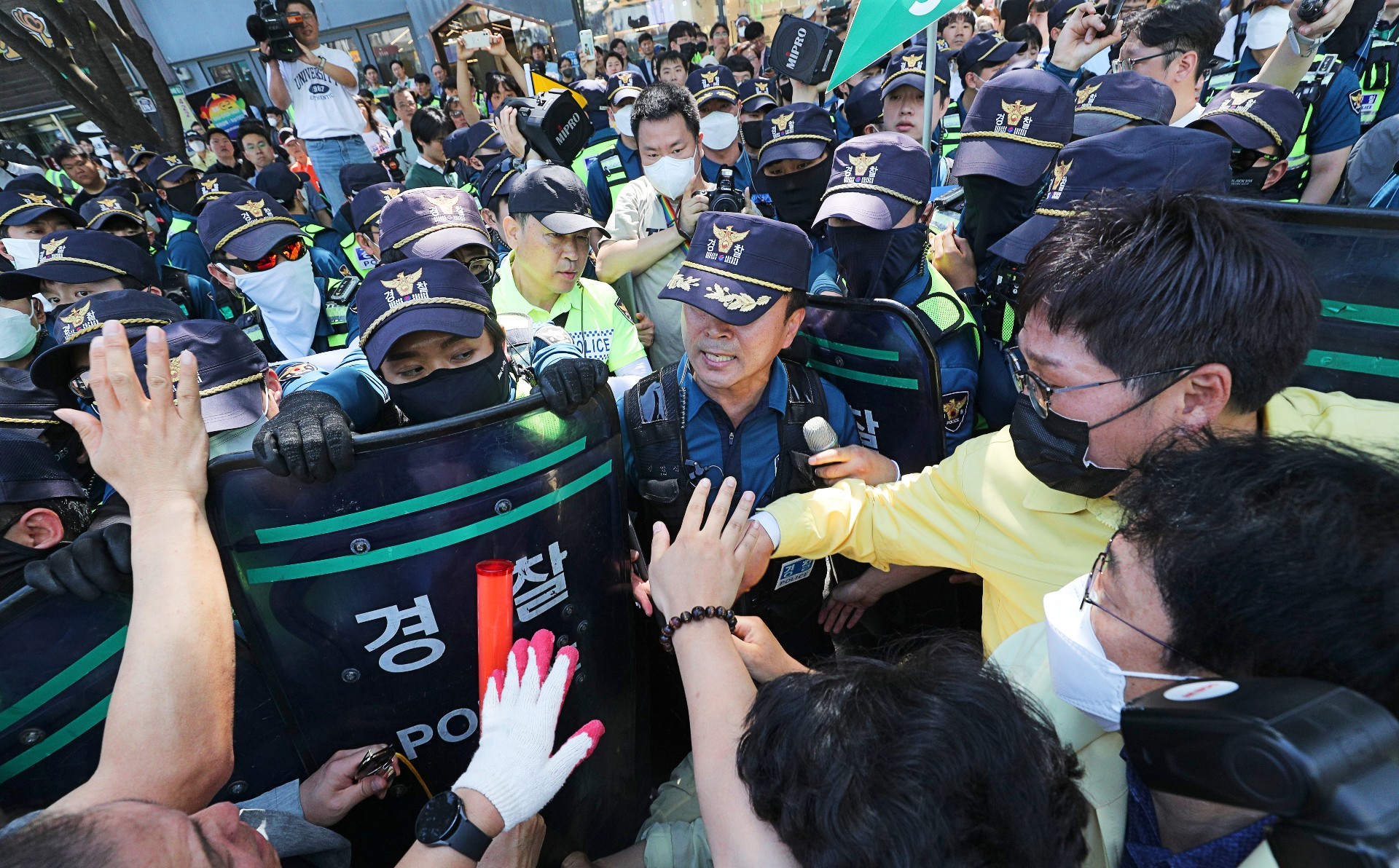 ๊ทธ์ œ ๋Œ€๊ตฌ์‹œ์—์„œ ํ€ด์–ด๋ฌธํ™”์ถ•์ œ๋ฅผ ๋‘๊ณ  ๊ฒฝ์ฐฐ๊ณผ ๋Œ€๊ตฌ์‹œ ๊ณต๋ฌด์›๋“ค์ด ์ถฉ๋Œํ–ˆ์ฃ . ํ™์ค€ํ‘œ ์‹œ์žฅ์ด ์žˆ๋Š” ๋Œ€๊ตฌ๋งŒ ์„ฑ์†Œ์ˆ˜์ž์— ๋ฐ•ํ•œ ๊ฑธ๊นŒ์š”? ์„œ์šธ์‹œ์™€ ์ธ์ฒœ์‹œ๋„ ๋น„์Šทํ•ฉ๋‹ˆ๋‹ค.