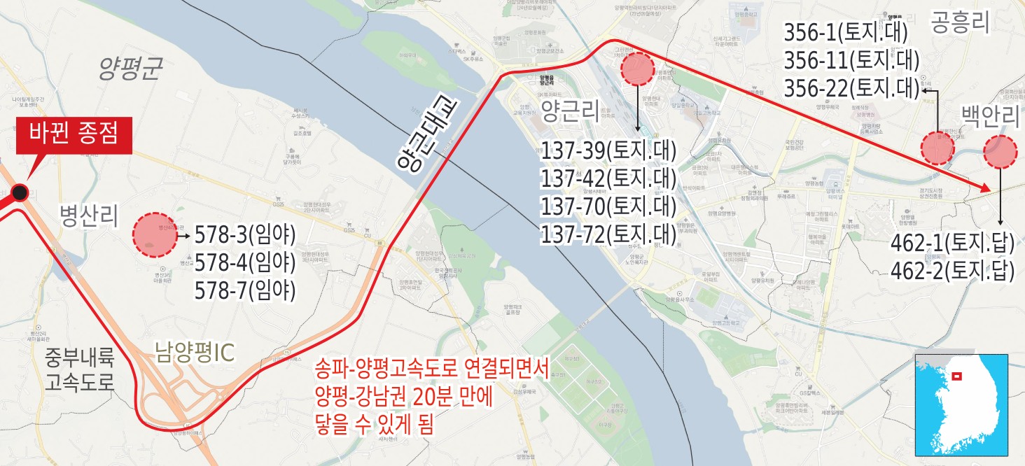"๊ฐ•๋‚จ 20๋ถ„ ์ถœํ‡ด๊ทผ" "๋•…๊ฐ’ ๋‘ ๋ฐฐ๋œ๋‹ค". ์„œ์šธ-์–‘ํ‰ ๊ณ ์†๋„๋กœ ์ข…์ ์ด ๊น€๊ฑดํฌ ์—ฌ์‚ฌ ์ผ๊ฐ€์˜ ๋•… ์ฃผ๋ณ€์œผ๋กœ ๋ฐ”๋€Œ์—ˆ๋‹ค๋ฉด ์–ด๋• ์„๊นŒ์š”? ๋ถ€๋™์‚ฐ ์ค‘๊ฐœ์—…์ž๋“ค ์–˜๊ธธ ๋“ค์–ด๋ดค์Šต๋‹ˆ๋‹ค.