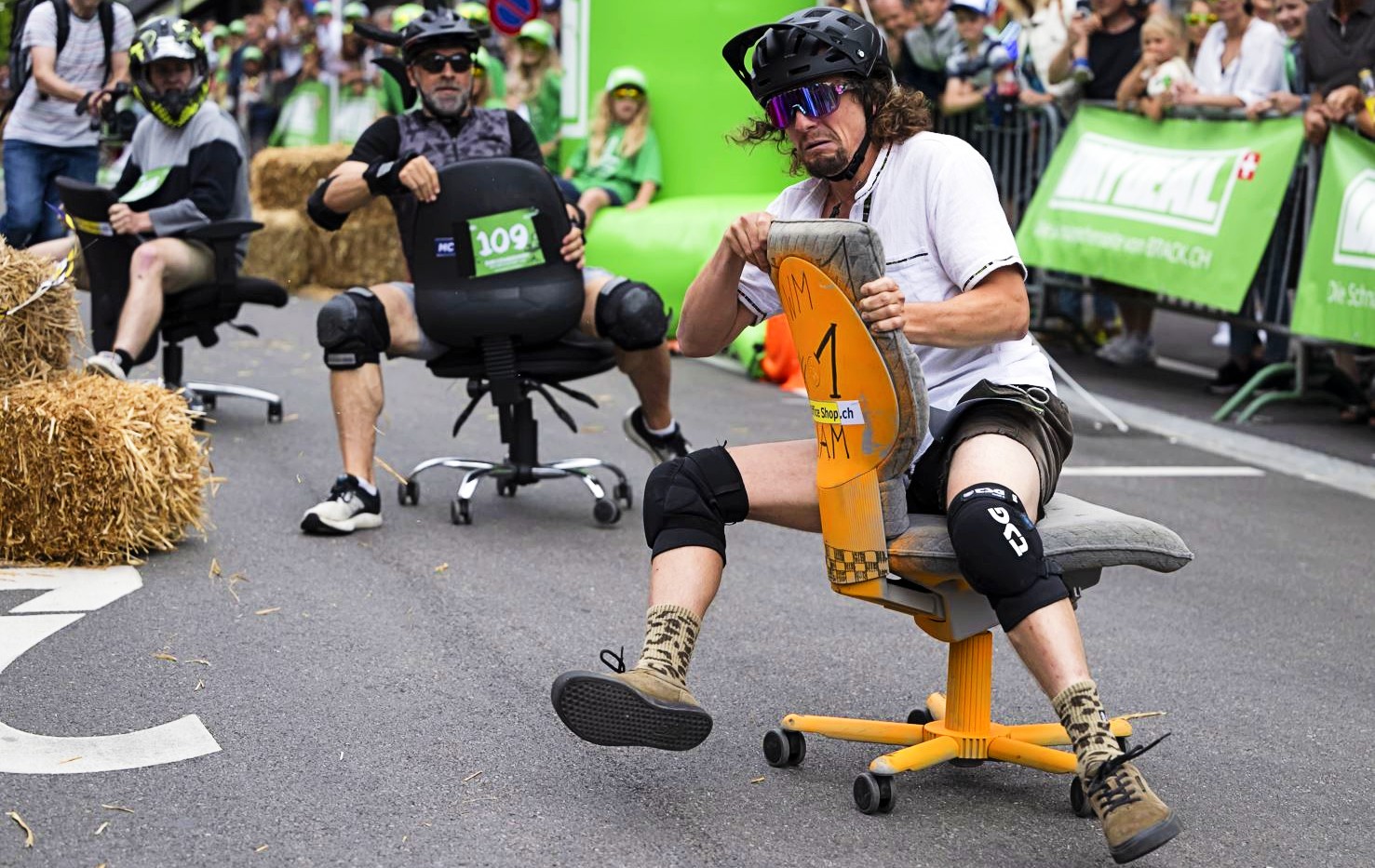์Šค์œ„์Šค ์˜ฌํ…์—์„œ ์—ด๋ฆฐ '์˜คํ”ผ์Šค ์ฒด์–ด ๋ ˆ์ด์Šค ์›”๋“œ์ปต'์— ์ฐธ๊ฐ€ํ•œ ์„ ์ˆ˜๋“ค์ด ๋„๋กœ๋ฅผ ์งˆ์ฃผํ•˜๊ณ  ์žˆ์Šต๋‹ˆ๋‹ค. ์ด๋“ค์€ ๊ฐœ์กฐํ•œ ์‚ฌ๋ฌด์‹ค ์˜์ž๋ฅผ ํƒ€๊ณ  ๊ฑด์ดˆ๋”๋ฏธ๋ฅผ ์š”๋ฆฌ์กฐ๋ฆฌ ํ”ผํ•ด๊ฐ€๋ฉฐ ๋‚ด๋ฆฌ๋ง‰๊ธธ์„ ๋‚ด๋‹ฌ๋ ธ๋Š”๋ฐ์š”. 10๋…„ ๋งŒ์— ์—ด๋ฆฐ ์ด๋ฒˆ ๋Œ€ํšŒ์˜ ์šฐ์Šน์ž์—๊ฒ 500๋‹ฌ๋Ÿฌ ์ƒ๋‹น์˜ ์Šค์œ„์Šค ์—ฌํ–‰ ๋ฐ”์šฐ์ฒ˜๊ฐ€ ์ฃผ์–ด์กŒ๋‹ค๊ณ  ํ•ฉ๋‹ˆ๋‹ค.