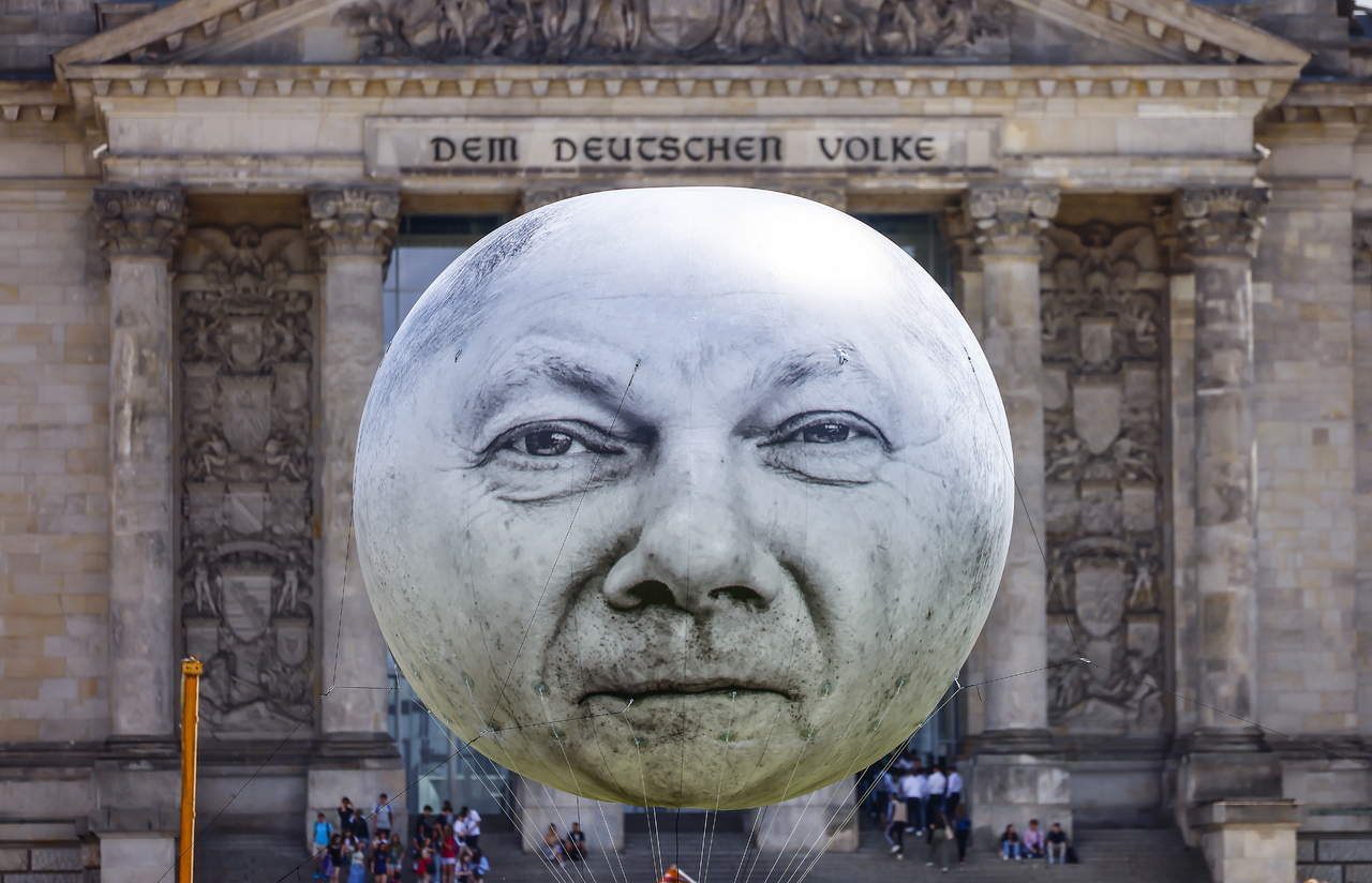 ๋…์ผ ๋ฒ ๋ฅผ๋ฆฐ์— ์žˆ๋Š” ์—ฐ๋ฐฉ์˜ํšŒ ์˜์‚ฌ๋‹น ์•ž. ์˜ฌ๋ผํ”„ ์ˆ„์ธ  ์ด๋ฆฌ ์–ผ๊ตด์ด ํœ˜์˜์ฒญ ๋– ์˜ฌ๋ž์Šต๋‹ˆ๋‹ค. ์‹œ๋ฏผ๋‹จ์ฒด ํ™œ๋™๊ฐ€๋“ค์ด ๋„์šด ๋Œ€ํ˜• ํ’์„ ์ธ๋ฐ์š”. ์ด๋“ค์€ ๋…์ผ ์ •๋ถ€๊ฐ€ ์ „ ์„ธ๊ณ„์ ์ธ ๋นˆ๊ณค๊ณผ ์งˆ๋ณ‘ ํ‡ด์น˜์— ์จ์˜จ ์˜ˆ์‚ฐ์„ ๋”๋Š” ๊นŽ์•„์„  ์•ˆ ๋œ๋‹ค๊ณ  ์ฃผ์žฅํ–ˆ์Šต๋‹ˆ๋‹ค.