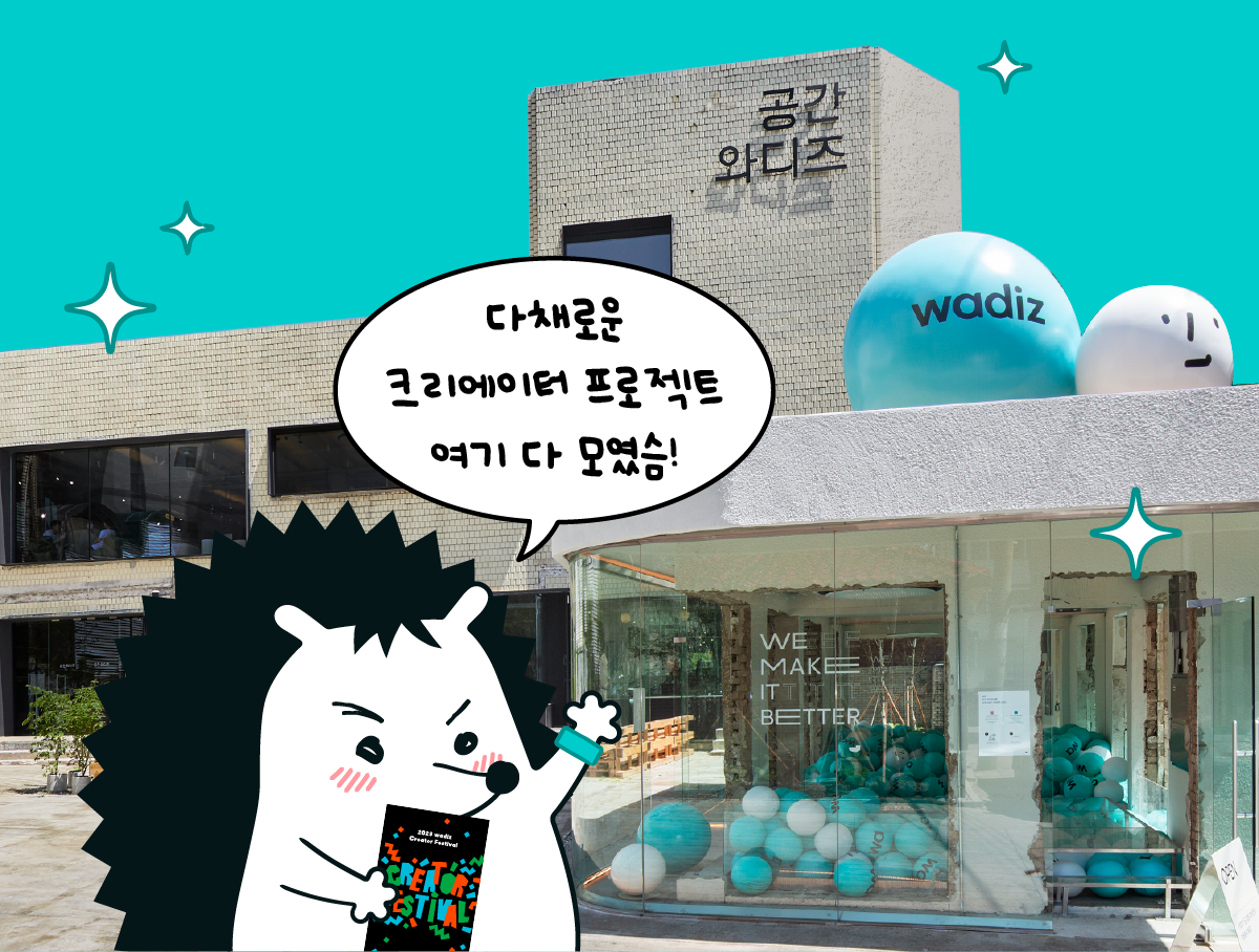 ๋ฐ์. ์ด๋ค ๊ณณ์ธ์ง ์ ๊น ์๊ฐํ๋ฉด: - ์๋์ฆ(wadiz): ํ๋ฉ์ ํตํด ์๋ก์ด ๋์ ์ ๋ฐ์ด์ฃผ๋ ๋ผ์ดํ๋์์ธ ํ๋ฉ ํ๋ซํผ์ด์์. ์ฐฝ์๋ฌผ์ ๋ง๋๋ '๋ฉ์ด์ปค'์ ํ๋ฉ์ ์ฐธ์ฌํ๋ '์ํฌํฐ'๋ค์ด ์๋์ฆ์ ์ฃผ์ธ๊ณต์ด์์. ๋ฏธ์ ·์ถํ·๊ตฟ์ฆ ๋ฑ ๋ค์ํ ํฌ๋ฆฌ์์ดํฐ ๋ถ์ผ์์ ํ๋ฉ ํ๋ก์ ํธ๋ฅผ ์ด์ด์.