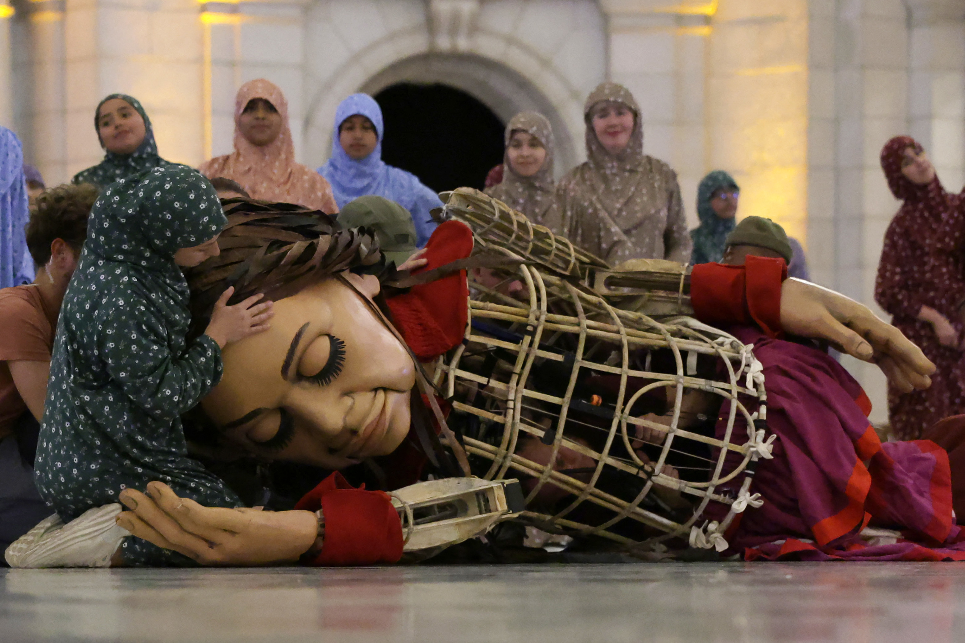 ๋ฏธ๊ตญ ์›Œ์‹ฑํ„ด D.C. ์œ ๋‹ˆ์–ธ์—ญ์— ์„ค์น˜๋œ 3.6m ํฌ๊ธฐ์˜ ์ธํ˜• '๋ฆฌํ‹€ ์•„๋ง'. ์ „์Ÿ๊ณผ ๋ฐ•ํ•ด๋ฅผ ํ”ผํ•ด ๊ณ ํ–ฅ์„ ๋– ๋‚˜์˜จ ์‹œ๋ฆฌ์•„ ์ถœ์‹  10์‚ด ์•„์ด๋ฅผ ๋ณธ๋œฌ ์กฐํ˜•๋ฌผ์ž…๋‹ˆ๋‹ค. ๋‚œ๋ฏผ์˜ ๊ณ ํ†ต์„ ์•Œ๋ฆฌ๋ ค๊ณ  ๊ตญ์ œ ์˜ˆ์ˆ ๋‹จ์ฒด๊ฐ€ ๋งŒ๋“  ๋ฆฌํ‹€ ์•„๋ง์€ ์ด๋‹ฌ๋ถ€ํ„ฐ ๋ฏธ๊ตญ์„ ํšก๋‹จํ•˜๋Š” ์—ฌํ–‰์„ ํ•˜๊ณ  ์žˆ์Šต๋‹ˆ๋‹ค.