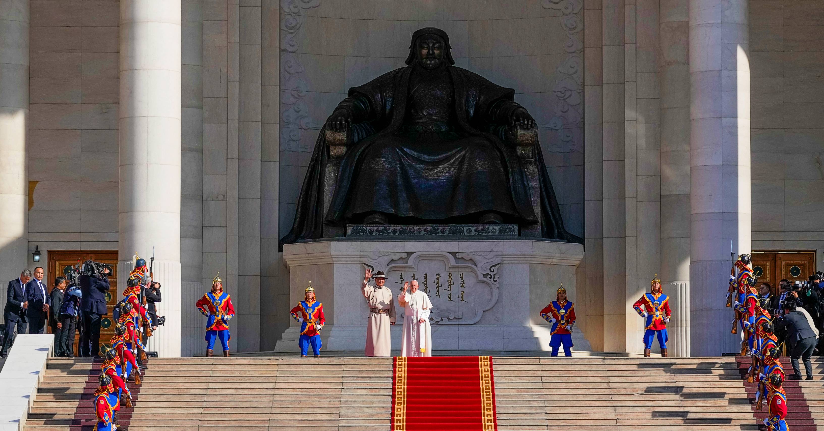 ํ”„๋ž€์น˜์Šค์ฝ” ๊ตํ™ฉ์ด ์—ญ๋Œ€ ๊ตํ™ฉ ์ค‘ ์ฒ˜์Œ์œผ๋กœ ๋ชฝ๊ณจ์„ ๋ฐฉ๋ฌธํ–ˆ์Šต๋‹ˆ๋‹ค. ๋ชฝ๊ณจ์€ ๊ณต์‹ ๊ฐ€ํ†จ๋ฆญ ์‹ ์ž๊ฐ€ 1450๋ช…๋ฐ–์— ์•ˆ ๋˜๋Š”๋ฐ์š”. ๋น ๋ฅธ ์„œ๊ตฌํ™”๋กœ ๊ต์„ธ๊ฐ€ ์ปค์งˆ ๊ฐ€๋Šฅ์„ฑ์ด ํฌ๋‹ค๊ณ  ํ•ฉ๋‹ˆ๋‹ค. ๊ตํ™ฉ์ด 2์ผ ๋ชฝ๊ณจ ๋Œ€ํ†ต๋ น๊ณผ ํ•จ๊ป˜ ์šธ๋ž€๋ฐ”ํƒ€๋ฅด์‹œ ์ˆ˜ํ๋ฐ”ํƒ€๋ฅด ๊ด‘์žฅ์— ์žˆ๋Š” ์นญ๊ธฐ์Šค์นธ ๋™์ƒ์„ ์ฐพ์•˜์Šต๋‹ˆ๋‹ค.