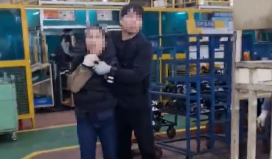 ๋ฒ•๋ฌด๋ถ€ ๋‚จ์„ฑ ์ง์›์ด ์—ฌ์„ฑ ์ด์ฃผ๋…ธ๋™์ž์˜ ๋ชฉ์„ ์กฐ๋ฅด๊ณ  ์žˆ์Šต๋‹ˆ๋‹ค. ๋ฏธ๋“ฑ๋ก ์ฒด๋ฅ˜ ์ด์ฃผ๋ฏผ์ด๋ฉด ์ด๋ž˜๋„ ๋˜๋Š” ๊ฑธ๊นŒ์š”? ์˜์ƒ์„ ๋ณธ ์•„์‹œ์•„ ์‚ฌ๋žŒ๋“ค์ด ๋ถ„๋…ธํ•˜๊ณ  ์žˆ์Šต๋‹ˆ๋‹ค.