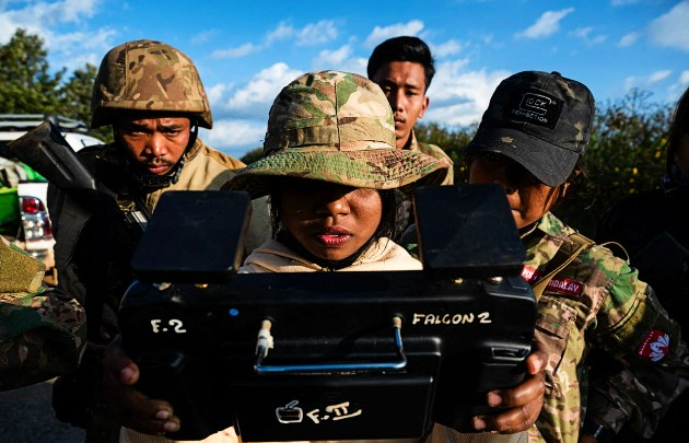 ์ „ํˆฌ์šฉ ๋“œ๋ก ์„ ์กฐ์ข…ํ•˜๊ณ  ์žˆ๋Š” ์—ฌ์„ฑ์€ ๋ฏธ์–€๋งˆ ์‹œ๋ฏผ๋ฐฉ์œ„๊ตฐ์ž…๋‹ˆ๋‹ค. ์ฟ ๋ฐํƒ€๋ฅผ ์ผ์œผํ‚จ ๋ฏธ์–€๋งˆ ๊ตฐ๋ถ€์™€ ์‹ธ์šฐ๋Š” ์ค‘์ธ๋ฐ์š”. ์ „ํˆฌ ์ฐธ์ „, ์ „์šฐ ์น˜๋ฃŒ, ์ตœ์ „์„  ์ˆœ์ฐฐ๊นŒ์ง€. 3๋…„์งธ ์ด์–ด์ง€๋Š” ์‹œ๋ฏผ ๋ฌด์žฅ ํ•ญ์Ÿ์—์„œ ์—ฌ์„ฑ๋“ค๋„ ํ™œ์•ฝํ•˜๊ณ  ์žˆ์Šต๋‹ˆ๋‹ค.