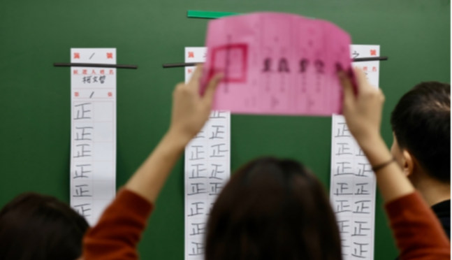 ํ•œ ์‚ฌ๋žŒ์ด ํˆฌํ‘œ์šฉ์ง€๋ฅผ ๋“ค์–ด์˜ฌ๋ฆฌ๋ฉด ๋‹ค๋ฅธ ์‚ฌ๋žŒ์ด ์น ํŒ์— '๋ฐ”๋ฅผ ์ •'(ๆญฃ)๋ฅผ ๊ทธ์–ด ์ง‘๊ณ„ํ•ฉ๋‹ˆ๋‹ค. ๋Œ€๋งŒ ์ดํ†ต์„ ๊ฑฐ ๊ฐœํ‘œ๋Š” ์•„๋‚ ๋กœ๊ทธ ๋ฐฉ์‹, ๊ทธ ์ž์ฒด์ธ๋ฐ์š”. ๊ณต์ •ํ•˜๊ณ  ์•ˆ์ „ํ•œ ๋ฐฉ๋ฒ•์ด๋ผ๊ณ  ํ•ฉ๋‹ˆ๋‹ค.