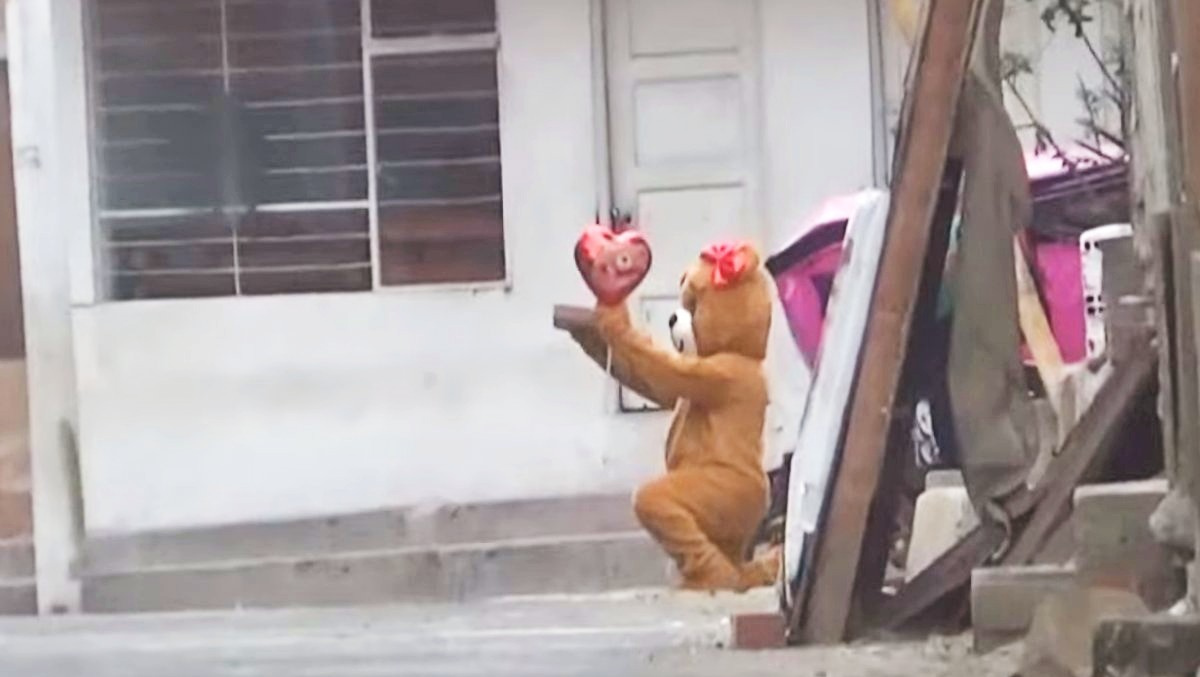 ๋ฐธ๋Ÿฐํƒ€์ธ๋ฐ์ด ์ „๋‚ , ํ•˜ํŠธ ํ’์„ ์„ ๋“  ๊ณฐ๋Œ์ด๊ฐ€ ๋ฌด๋ฆŽ์„ ๊ฟ‡๊ณ  ์„ ๋ฌผ์„ ๋‚ด๋ฐ‰๋‹ˆ๋‹ค. ์ด๋ฒคํŠธ์˜ ๋ชฉํ‘œ๋Š” ํ”„๋Ÿฌํฌ์ฆˆ๊ฐ€ ์•„๋‹ˆ๋ผ ๊ฒ€๊ฑฐ. ๊ณฐ๋Œ์ด๋Š” ๋งˆ์•ฝ ํŒ๋งค์ƒ ๊ฒ€๊ฑฐ ์ž‘์ „์— ํˆฌ์ž…๋œ ํŽ˜๋ฃจ์˜ ๊ฒฝ์ฐฐ์ด์—ˆ๋Š”๋ฐ์š”. ์ด๋ฒคํŠธ๊ฐ€ ๊ถ๊ธˆํ•ด ๊ณฐ๋Œ์ด์—๊ฒŒ ๋‹ค๊ฐ€๊ฐ„ ์—ฌ์„ฑ ๋งˆ์•ฝ ํŒ๋งค์ƒ์€ ๊ฒฐ๊ตญ ์ฒดํฌ๋์Šต๋‹ˆ๋‹ค.