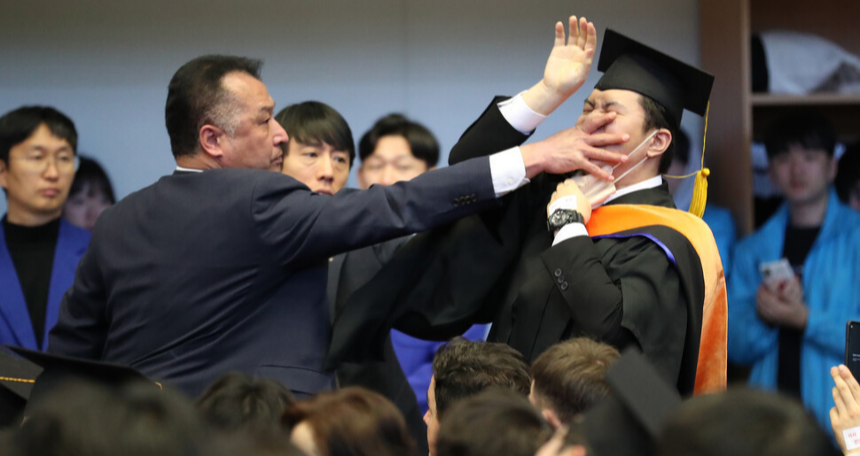 ์กธ์—…์‹๋„ ์‚ด๋ฒŒํ•ฉ๋‹ˆ๋‹ค. ์–ผ๋งˆ ์ „ ์นด์ด์ŠคํŠธ ์กธ์—…์‹์—์„œ ์œค์„์—ด ๋Œ€ํ†ต๋ น ๋ฐœ์–ธ ๋„์ค‘ ํ•ญ์˜ํ•˜๋˜ ์กธ์—…์ƒ์ด '์ž…ํ‹€๋ง‰' ๋‹นํ–ˆ์—ˆ์ฃ . ๊ทธ๊ฐ€ ํ•˜๋ ค๋˜ ๋ง์€ ๋ญ˜๊นŒ์š”? ์ง์ ‘ ๋“ค์–ด๋ดค์Šต๋‹ˆ๋‹ค.