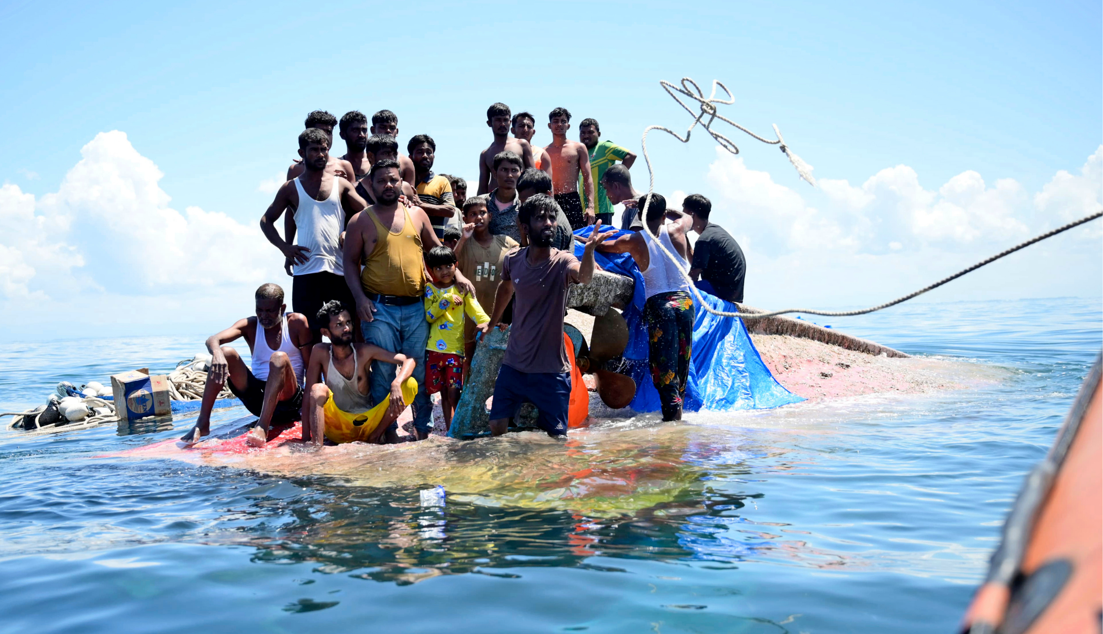 ๊ตฌ์กฐ์„ ์˜ ๋ฐง์ค„์„ ์›€์ผœ์ฅ๋ ค๋Š” ๋‚จ์ž์™€ ๋’ค์ง‘ํžŒ ๋ฐฐ์— ์„œ ์žˆ๋Š” ์‚ฌ๋žŒ๋“ค. ๋ถˆ๊ต ๊ตญ๊ฐ€ ๋ฏธ์–€๋งˆ์—์„œ ์ด์Šฌ๋žŒ๊ต๋ฅผ ๋ฏฟ๋Š”๋‹จ ์ด์œ ๋กœ ๋‚œ๋ฏผ์ด ๋œ ๋กœํž์•ผ์กฑ์ธ๋ฐ์š”. ์ข…๊ต ๋ฐ•ํ•ด๋ฅผ ํ”ผํ•ด ์˜ค๋ฅธ ๋‚œ๋ฏผ์„ ์ด ์ „๋ณต๋˜๋ฉด์„œ ์ˆ˜์‹ญ๋ช…์ด ์‹ค์ข…๋์Šต๋‹ˆ๋‹ค.
