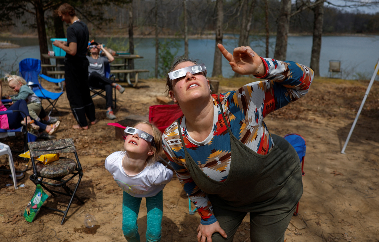 ์˜ค๋Š˜ ์ƒˆ๋ฒฝ, ๋ฏธ๊ตญ์—์„  ๋‹ฌ์ด ํƒœ์–‘์„ ์™„์ „ํžˆ ๊ฐ€๋ ธ์Šต๋‹ˆ๋‹ค. ๊ฐœ๊ธฐ์ผ์‹์€ 7๋…„ ๋งŒ์ธ๋ฐ์š”. ๋ฏธ๊ตญ ์ผ๋ฆฌ๋…ธ์ด์ฃผ์˜ ํ•œ ์บ ํ”„์žฅ์—์„œ ์—„๋งˆ์™€ 6์‚ด ์•„์ด๊ฐ€ ์ผ์‹ ๊ด€์ธก ์•ˆ๊ฒฝ์„ ์“ด ์ฑ„ ์‚ฌ๋ผ์งˆ ํƒœ์–‘์„ ๊ด€์ฐฐํ•˜๊ณ  ์žˆ์Šต๋‹ˆ๋‹ค. ๋™๋ฌผ์›์˜ ํ–‰๋™ํ•™์ž๋“ค๋„ ํŠน๋ณ„ํ•œ ์ค€๋น„๋ฅผ ํ–ˆ๋‹ค๊ณ  ํ•ฉ๋‹ˆ๋‹ค.๐Ÿ‘‰๊ธฐ์‚ฌ๋ณด๊ธฐ