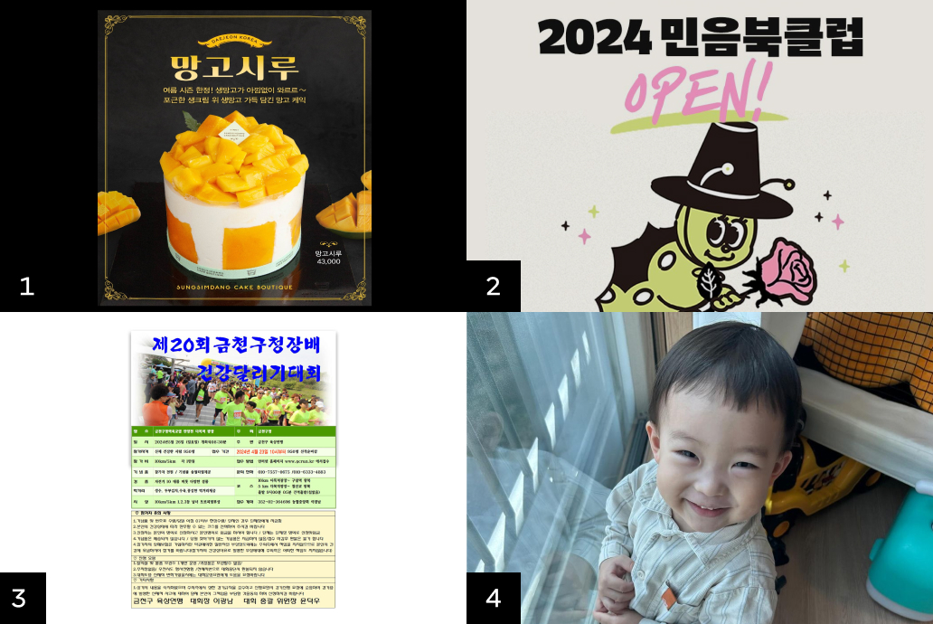 3. ๊ธˆ์ฒœ๊ตฌ ๊ฑด๊ฐ•๋‹ฌ๋ฆฌ๊ธฐ๋Œ€ํšŒ: '์ œ20ํšŒ ๊ธˆ์ฒœ๊ตฌ์ฒญ์žฅ๋ฐฐ ๊ฑด๊ฐ•๋‹ฌ๋ฆฌ๊ธฐ๋Œ€ํšŒ'๊ฐ€ ์ธ๊ธฐ์˜ˆ์š”. ๋งˆ๋ผํ†ค์— ์ฐธ์—ฌํ•œ ์‚ฌ๋žŒ ๋ชจ๋‘์—๊ฒŒ ๋ง‰๊ฑธ๋ฆฌ์™€ ์ˆ˜์œก์„ ๋‚˜๋ˆ ์ฃผ๋Š” ํŒŒ๊ฒฉ์ ์ธ ํ–‰์‚ฌ์ธ๋ฐ์š”. ์ž‘๋…„์— ์ด์–ด ์˜ฌํ•ด๋„ ๋น›์˜ ์†๋„๋กœ ์‹ ์ฒญ์ด ๋งˆ๊ฐ๋๋‹ค๊ณ . #ํ–‰์‚ฌ