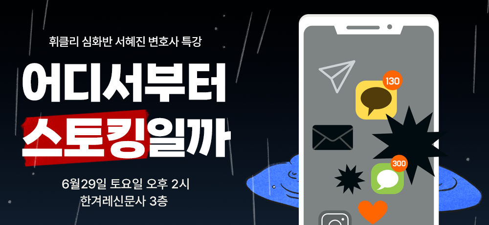 ํ˜น์‹œ ์ „ ์—ฐ์ธ์ด ๋งค์ผ ์ง‘ ์•ž์—์„œ ๊ธฐ๋‹ค๋ ค ๊ณตํฌ์Šค๋Ÿฌ์› ๋˜ ๊ฒฝํ—˜์ด ์žˆ์œผ์„ธ์š”? ๋ˆ„๊ตฐ๊ฐ€์˜ ๋ถˆํŽธํ•œ DM์ด ๊ณ„์†๋ผ ์˜จ๋ผ์ธ ์ ‘์†์ด ๊บผ๋ ค์ง€์‹  ์ ์€์š”? '์ € ํ–‰๋™์ด ์Šคํ† ํ‚น์ผ๊นŒ ์•„๋‹๊นŒ'๋ฅผ ๊ณ ๋ฏผํ•ด๋ณธ ์  ์žˆ๋‹ค๋ฉด, ํœ˜ํด๋ฆฌ ์‹ฌํ™”๋ฐ˜์— ๋ชจ์—ฌ ํ•จ๊ป˜ ์ด์•ผ๊ธฐ๋ฅผ ๋‚˜๋ˆ  ๋ณด์•„์š”.
