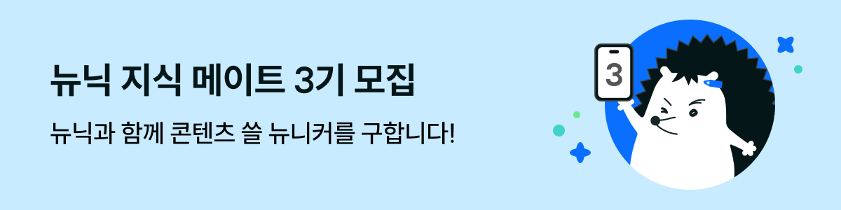 ์ด๋ฏธ ๋งŽ์€ ๋‰ด๋‹ˆ์ปค๋“ค์ด ์„ธ์ƒ์„ ํ–ฅํ•œ ๋ฌผ์Œํ‘œ์™€ ๋‚˜๋ฅผ ์ฑ„์šฐ๋Š” ๋А๋‚Œํ‘œ๋ฅผ ๋˜์ง€๊ณ  ์žˆ์–ด์š”. ๋‰ด๋‹‰์—๋Š” ๊ฒฝ์ œ·์‚ฌํšŒ์™€ ๊ฐ™์€ ์‹œ์‚ฌ ๋ถ„์•ผ๋ถ€ํ„ฐ AI·์ปค๋ฆฌ์–ด·๋งˆ์ผ€ํŒ…·์ฒ ํ•™·KํŒ·์ œ๋นต·์—ฌํ–‰·ํŠธ๋ Œ๋“œ ๋“ฑ ๋‹ค์–‘ํ•œ ๋ถ„์•ผ์˜ ์ง€์‹๊ณผ ๊ฒฝํ—˜์ด ๋‹ด๊ธด ์•„ํ‹ฐํด์ด ๊ฐ€๋“ํ•œ๋ฐ์š”. ํ˜น์‹œ '๋‚˜๋„ ๋‚ด ์ธ์‚ฌ์ดํŠธ๋ฅผ ๋‰ด๋‹ˆ์ปค๋“ค๊ณผ ๋‚˜๋ˆ„๊ณ  ์‹ถ์–ด!' ํ–ˆ๋‹ค๋ฉด, ๋‰ด๋‹‰ ์ง€์‹ ๋ฉ”์ดํŠธ 3๊ธฐ์— ์ง€์›ํ•ด์š”!