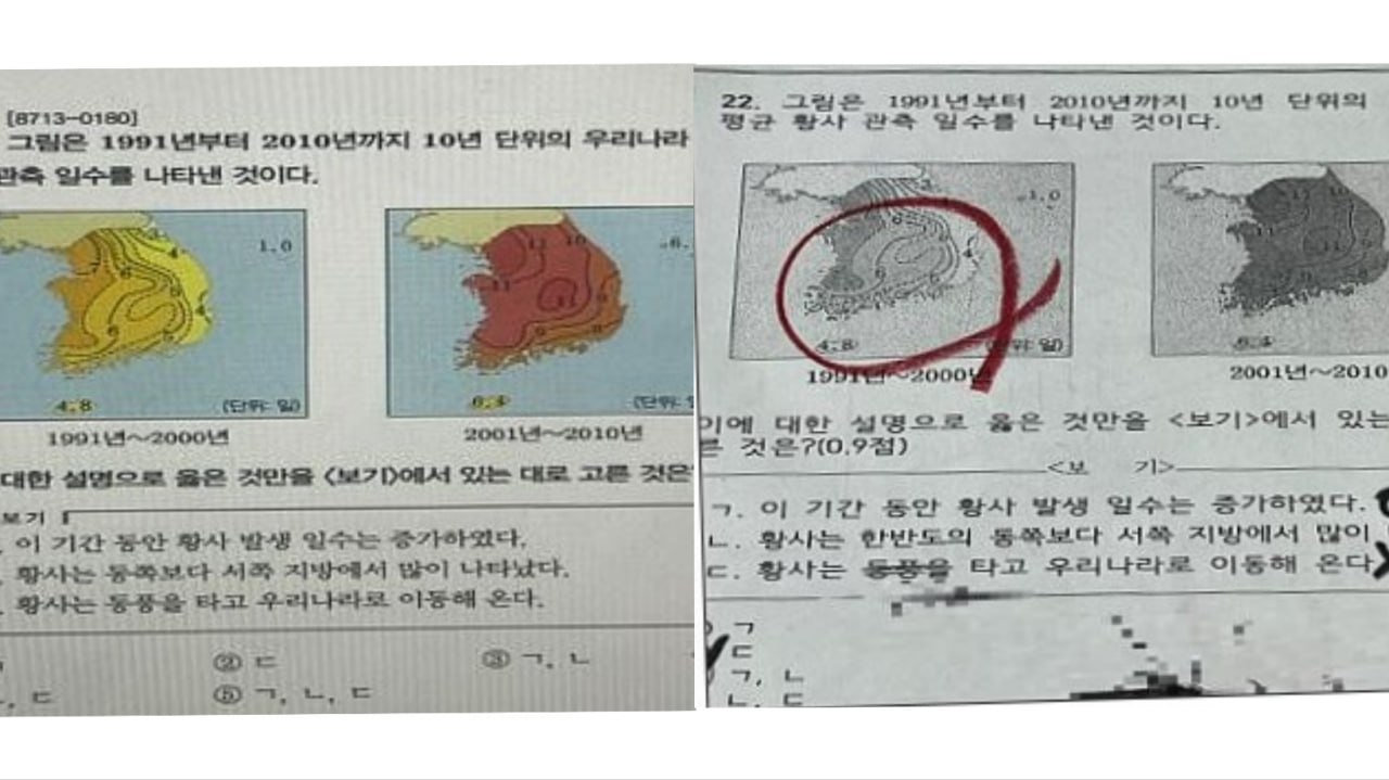 ์˜ค๋ฅธ์ชฝ์€ ํ•œ ๊ณ ๋“ฑํ•™๊ต์˜ 1ํ•™๊ธฐ ๊ธฐ๋ง์‹œํ—˜์— ๋‚˜์˜จ ์ง€๊ตฌ๊ณผํ•™ ๋ฌธ์ œ์ž…๋‹ˆ๋‹ค. ๊ต์‚ฌ๊ฐ€ EBS ๊ต์žฌ ๋ฌธํ•ญ์„ ๊ทธ๋Œ€๋กœ ๋ฒ ๊ปด ์‹œํ—˜์ง€๋ฅผ ๋งŒ๋“  ๊ฑด๋ฐ์š”. ํ•™์ƒ๋“ค์€ ๋ฐฉํ•™์‹ ๋‚  ๋˜ ์‹œํ—˜์„ ๋ด์•ผ ํ–ˆ์Šต๋‹ˆ๋‹ค.
