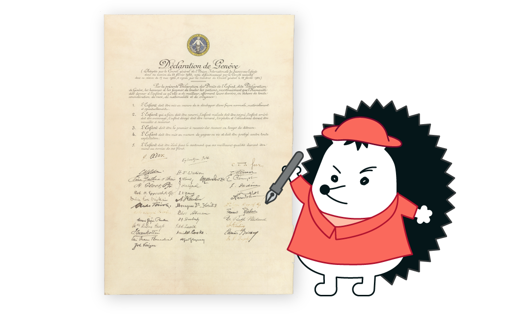 ์ ญ์ ๊ตฌํธ ํ๋์ ๋์ด ์๋์ ๊ถ๋ฆฌ๋ฅผ ๊ตญ์ ์ฌํ์์ ์ธ์ ๋ฐ๊ฒ ํ๊ณ ์ ํ์ด์. ๊ทธ๋์ ์ธ๊ณ ์ต์ด๋ก ์๋๊ถ๋ฆฌ์ ์ธ๋ฌธ์ ์์ฑํ๋๋ฐ์. ๋ชจ๋ ์๋์ ๋๋ฑํ ์ธ๊ฒฉ์ฒด๋ก์ ๋จน๊ณ , ์น๋ฃ๋ฐ๊ณ , ๊ต์ก๋ฐ๊ณ , ๋ณดํธ๋ฐ์ ๊ถ๋ฆฌ๊ฐ ์๋ค๊ณ ์ฃผ์ฅํ ๊ฒ. ์ด๊ฒ์ด 1924๋