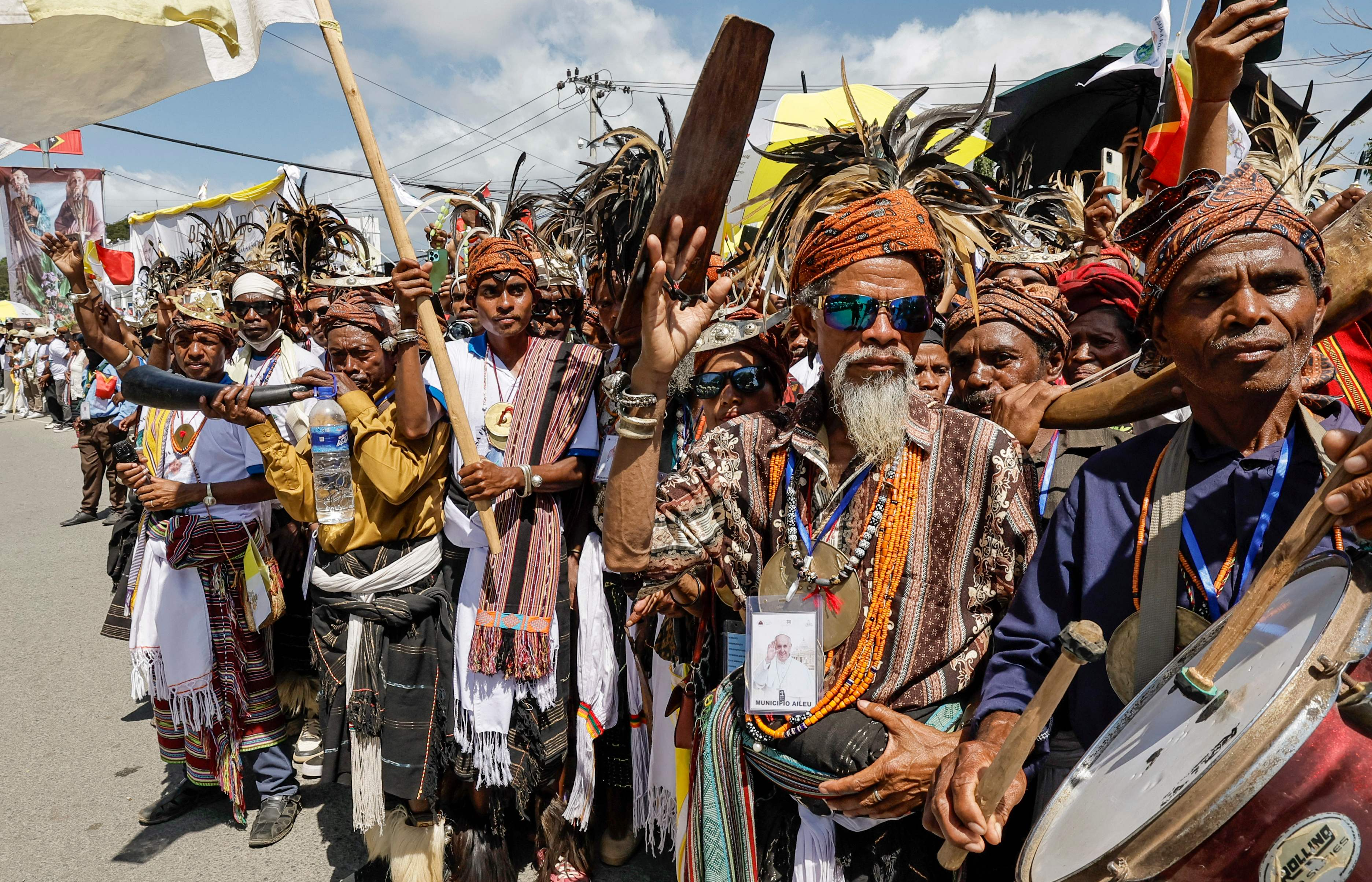 9์ผ(ํ˜„์ง€์‹œ๊ฐ) ๋™ํ‹ฐ๋ชจ๋ฅด ์ˆ˜๋„ ๋”œ๋ฆฌ ๊ฑฐ๋ฆฌ๋ฅผ ๊ฐ€๋“ ๋ฉ”์šด ๊ฐ€ํ†จ๋ฆญ ์‹ ์ž๋“ค์ด ๊ธฐ๋‹ค๋ฆฌ๋Š” ์‚ฌ๋žŒ์€ ํ”„๋ž€์น˜์Šค์ฝ” ๊ตํ™ฉ์ž…๋‹ˆ๋‹ค. ๋™ํ‹ฐ๋ชจ๋ฅด๋Š” ํฌ๋ฅดํˆฌ๊ฐˆ์— ์ด์–ด ์ธ๋„๋„ค์‹œ์•„์—๊ฒŒ ์ ๋ น๋‹นํ–ˆ๋‹ค๊ฐ€ 2002๋…„ ๋…๋ฆฝํ–ˆ์ฃ . ๋…๋ฆฝ ๋’ค ๊ตํ™ฉ์ด ๋ฐฉ๋ฌธํ•œ ๊ฑด ์ด๋ฒˆ์ด ์ฒ˜์Œ์ธ๋ฐ์š”. ๋™ํ‹ฐ๋ชจ๋ฅด ์ธ๊ตฌ 130๋งŒ๋ช… ์ค‘ 98%๋Š” ๊ฐ€ํ†จ๋ฆญ ์‹ ์ž์ž…๋‹ˆ๋‹ค.