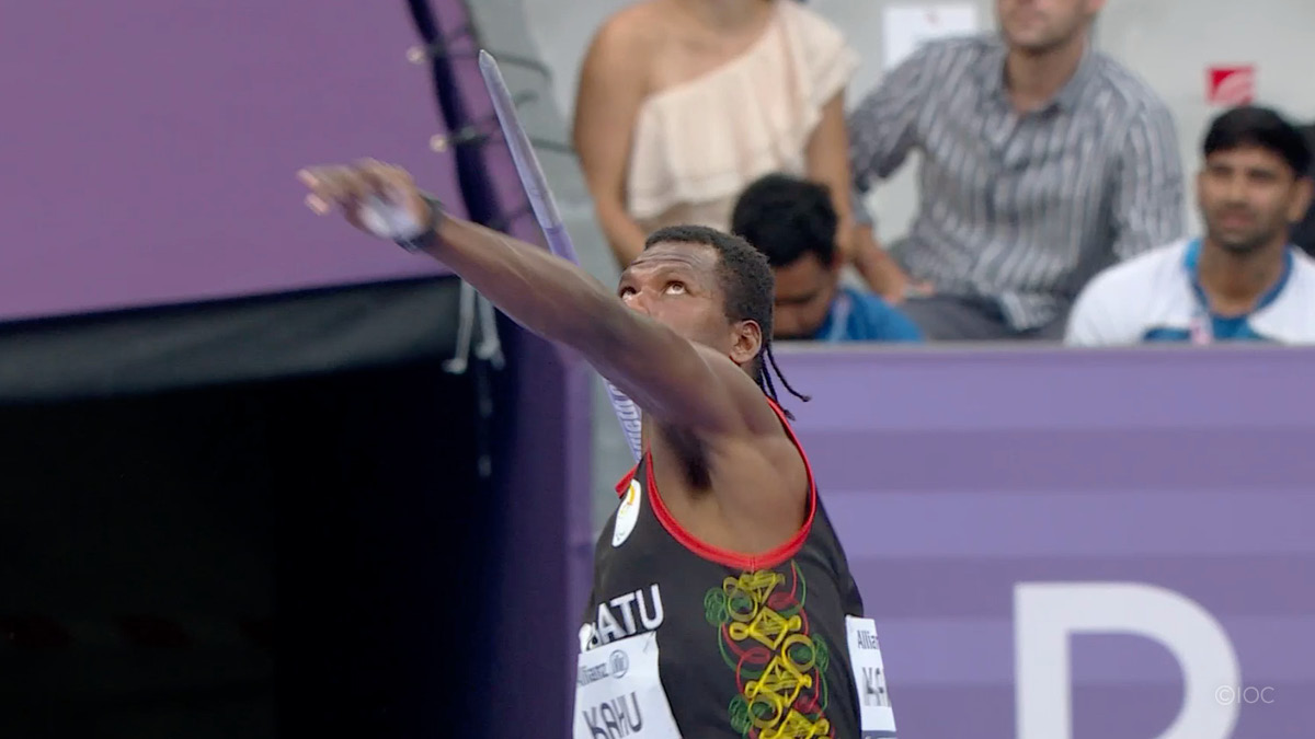 ์˜ค์„ธ์•„๋‹ˆ์•„ ์„ฌ๋‚˜๋ผ ๋ฐ”๋ˆ„์•„ํˆฌ ์ถœ์‹ ์˜ ์ฐฝ๋˜์ง€๊ธฐ ์„ ์ˆ˜๊ฐ€ 2024 ํŒŒ๋ฆฌ ํŒจ๋Ÿด๋ฆผํ”ฝ ๋ฌด๋Œ€์— ์„ฐ์–ด์š” ๐Ÿ”ฑ. ๊ทธ์˜ ์ด๋ฆ„์€ ์ผ„ ์นดํ›„. ํ˜ธํก์„ ๊ฐ€๋‹ค๋“ฌ๊ณ  ๋„์›€๋‹ซ๊ธฐ๋ฅผ ํ•ด ์žˆ๋Š” ํž˜๊ป ์ฐฝ์„ ๋˜์ง€๋Š”๋ฐ์š”. ์ข…์ „ ๊ทธ์˜ ๊ฐœ์ธ ๊ธฐ๋ก์ธ 48m17์„ ๋„˜์–ด์„  52m๋ฅผ ๋‚ ์•„ ๋•…์— ๊ฝ‚ํ˜”์–ด์š”. ์ฐฝ๋˜์ง€๊ธฐ ๋‚จ์ž ์Šคํฌ์ธ ๋“ฑ๊ธ‰ F64 ๊ฒฐ์„ ์—์„œ 10๋ช… ์ค‘ 9์œ„. ๋ฉ”๋‹ฌ ํš๋“์—” ์‹คํŒจํ–ˆ์ง€๋งŒ ํŒจ๋Ÿด๋ฆผํ”ฝ ์ถœ์ „์˜ ๊ฟˆ์„ ์ด๋ฃฌ ๊ทธ๊ฐ€ ๊ฐ์‚ฌ ์ธ์‚ฌ๋ฅผ ์ „ํ•œ ๊ณณ์€ ๋‹ค๋ฆ„ ์•„๋‹Œ ํ•œ๊ตญ์ด์—ˆ์–ด์š” ๐Ÿ‡ฐ๐Ÿ‡ท.
