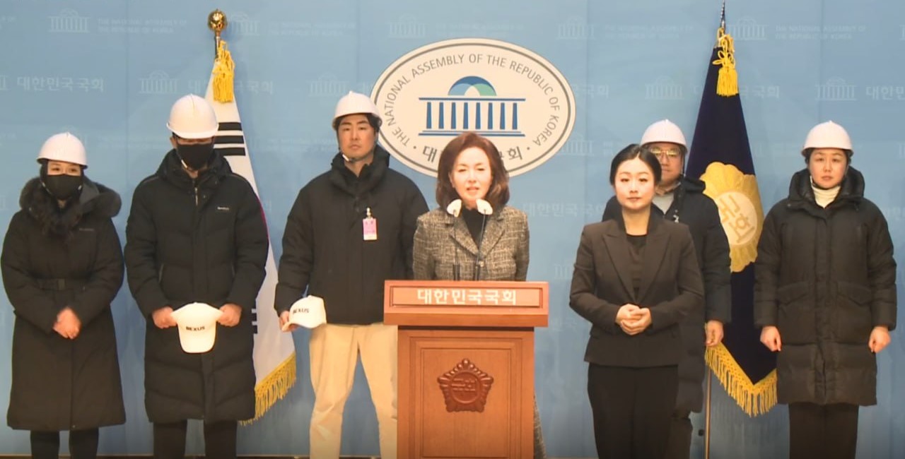 ํ•˜์–€ ์•ˆ์ „๋ชจ๋ฅผ ์“ด ์ด๋“ค์€ ์ž์นญ '๋ฐฑ๊ณจ๋‹จ'์ธ๋ฐ์š”. ๊ณผ๊ฑฐ ๋ฏผ์ฃผํ™” ์‹œ์œ„์—์„œ ์‹œ๋ฏผ์„ ๋•Œ๋ ค์žก์•˜๋˜ ๊ฒฝ์ฐฐ ๋ถ€๋Œ€์˜ ์ด๋ฆ„์„ ๊ฐ–๋‹ค ์ผ์Šต๋‹ˆ๋‹ค. ์ด๋“ค์„ ๊ตญํšŒ ๋‹จ์ƒ์— ์„ธ์šด ๊ฑด, ๊ตญ๋ฏผ์˜ํž˜ ์˜์›์ž…๋‹ˆ๋‹ค.