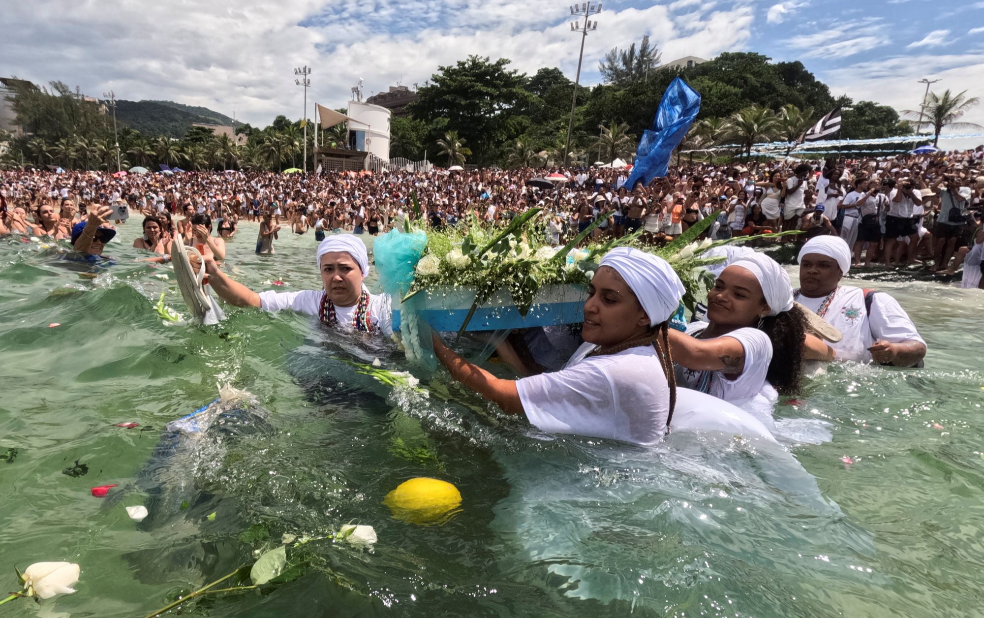2์ผ(ํ˜„์ง€์‹œ๊ฐ) ๋ธŒ๋ผ์งˆ์˜ ์•„ํฌ์•„๋„๋ฅด ํ•ด๋ณ€๊ฐ€์—์„œ ์‚ฌ๋žŒ๋“ค์ด ๋ณดํŠธ์— ๊ฐ€๋“ ์‹ค์€ ๊ฑด ๋ฐ”๋‹ค์˜ ์—ฌ์‹  '์˜ˆ๋งŒ์ž'์—๊ฒŒ ๋ฐ”์น˜๋Š” ๊ณต๋ฌผ์ž…๋‹ˆ๋‹ค. ์›๋ž˜ ์˜ˆ๋งŒ์ž๋Š” ์•„ํ”„๋ฆฌ์นด์˜ ํ† ์† ์‹ ์•™์ด ์ถ”์•™ํ•˜๋Š” ์‹ ์ธ๋ฐ์š”. ๊ณผ๊ฑฐ ๋…ธ์˜ˆ๋ฌด์—ญ ์‹œ๊ธฐ์— ์•„ํ”„๋ฆฌ์นด์ธ๋“ค์ด ๋‚จ์•„๋ฉ”๋ฆฌ์นด๋กœ ์ด์ฃผํ•œ ๋’ค๋ถ€ํ„ฐ ๋ธŒ๋ผ์งˆ ์‚ฌ๋žŒ๋“ค๋„ ์˜ˆ๋งŒ์ž๋ฅผ ํ’์š”์˜ ์‹ ์œผ๋กœ ์„ฌ๊ธฐ๊ณ  ์žˆ๋‹ค๊ณ  ํ•ด์š”.