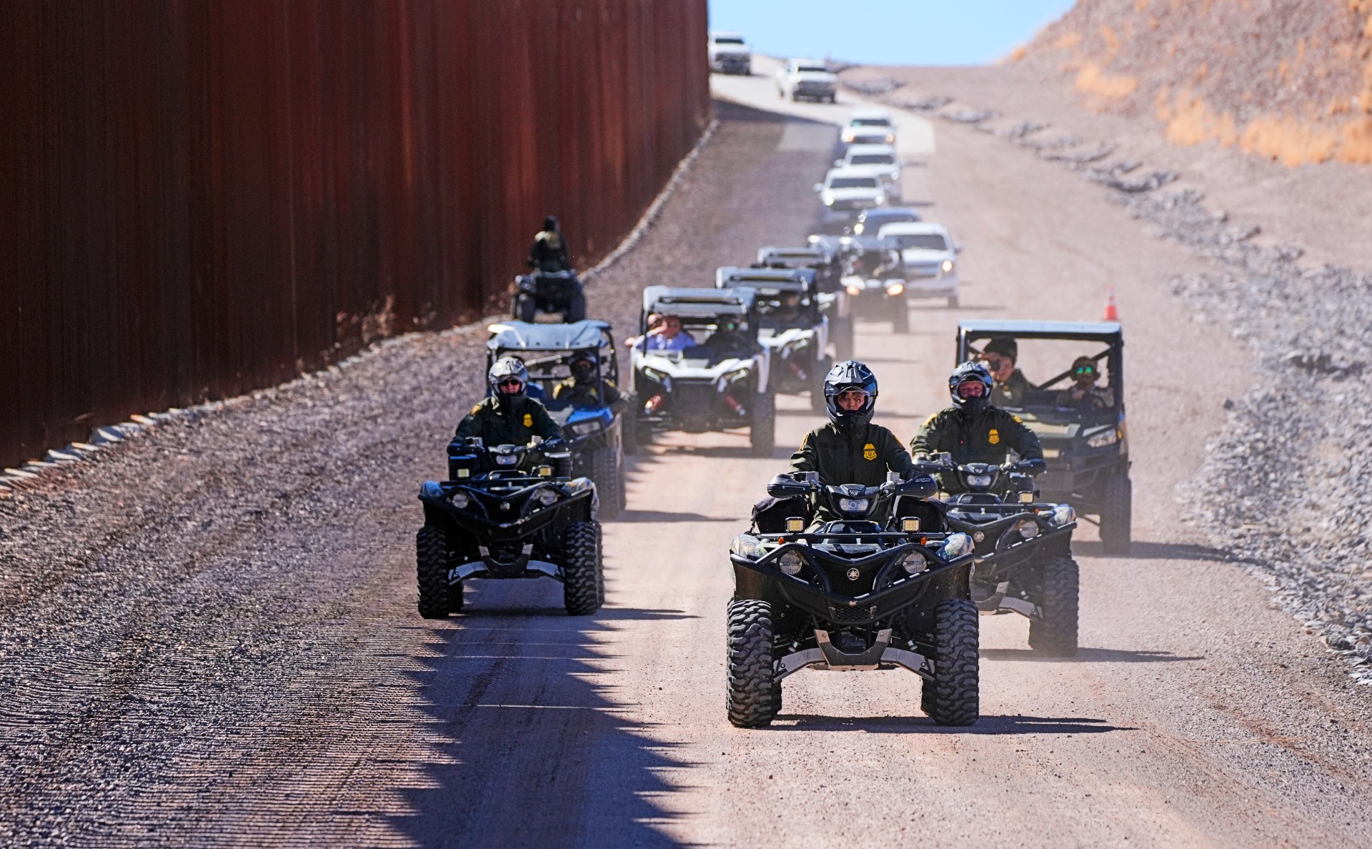 ๋น„ํฌ์žฅ๊ธธ์„ ๋‹ฌ๋ฆฌ๋Š” ์ž๋™์ž ๊ฒฝ์ฃผ๋Œ€ํšŒ๊ฐ€ ์•„๋‹™๋‹ˆ๋‹ค. 15์ผ(ํ˜„์ง€์‹œ๊ฐ) ๋ฉ•์‹œ์ฝ”์™€ ๊ตญ๊ฒฝ์„ ๋งž๋Œ„ ๋ฏธ๊ตญ ์• ๋ฆฌ์กฐ๋‚˜์ฃผ ๋…ธ๊ฐˆ๋ ˆ์Šค ์ง€์—ญ์œผ๋กœ ๊ตญํ† ์•ˆ๋ณด๋ถ€ ์ง์›๋“ค์ด ์ ๊ฒ€์„ ๋‚˜์˜จ ๊ฑด๋ฐ์š”. ๋งจ ์•ž์„ ๋‹ฌ๋ฆฌ๊ณ  ์žˆ๋Š” ์šด์ „์ž๊ฐ€ ํŠธ๋Ÿผํ”„ ํ–‰์ •๋ถ€์˜ ๋ถˆ๋ฒ• ์ด๋ฏผ์ž ์ถ”๋ฐฉ์ •์ฑ…์— ์•ž์žฅ์„œ๊ณ  ์žˆ๋Š” ํฌ๋ฆฌ์Šคํ‹ฐ ๋†ˆ ์žฅ๊ด€์ž…๋‹ˆ๋‹ค.