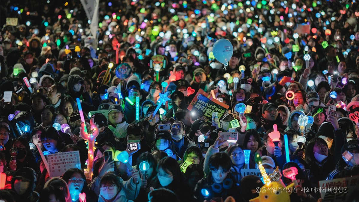 12.3 ๋น„์ƒ๊ณ„์—„ ์„ ํฌ ์ดํ›„ ๋งŽ์€ ์‚ฌ๋žŒ๋“ค์ด ๊ด‘์žฅ์œผ๋กœ ๋‚˜์„œ๊ณ  ์žˆ์ž–์•„์š”. ๊ทธ๋Ÿฐ๋ฐ ์œค์„์—ด ๋Œ€ํ†ต๋ น ํƒ„ํ•ต ์‹œ์œ„๋ฅผ ์ด๋ˆ ์ฃผ์—ญ์ด ์žˆ์—ˆ์œผ๋‹ˆ, 2030 ์ฒญ๋…„ ์—ฌ์„ฑ๋“ค์ด์—์š”. ์—ฌ์˜๋„·๋‚จํƒœ๋ น·๊ด‘ํ™”๋ฌธ ๋“ฑ ํƒ„ํ•ต ์‹œ์œ„๊ฐ€ ์—ด๋ฆฌ๋Š” ์ž๋ฆฌ๋ฉด ์–ด๋””๋“  ์‘์›๋ด‰์„ ๋“  ์ฒญ๋…„ ์—ฌ์„ฑ๋“ค์„ ๋งŽ์ด ๋ณผ ์ˆ˜ ์žˆ์—ˆ๋Š”๋ฐ์š”. ํŠนํžˆ ์ฒญ๋…„ ์—ฌ์„ฑ๋“ค์˜ KํŒ ํŒฌ๋ค ๋ฌธํ™”๊ฐ€ ์‹œ์œ„์— ์˜ํ–ฅ์„ ๋ฏธ์น˜๋ฉด์„œ ์ด์ „ ์‹œ์œ„์—์„  ๋“ฑ์žฅํ•˜์ง€ ์•Š์•˜๋˜ ์‘์›๋ด‰·KํŒ·์„ ๊ฒฐ์ œ ๋ฌธํ™” ๋“ฑ์ด ์ค‘์‹ฌ์ด ๋์–ด์š”