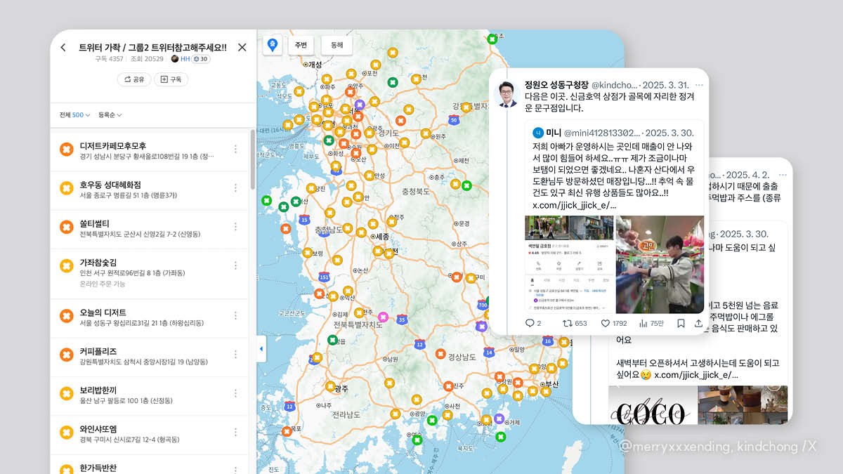 ๋ค์ด ์์ํ๋ ์๋น์ด๋ ๊ฐ๊ฒ์ ์์น·์ ๋ณด๋ฅผ ์ง์ ๋ชจ์ ๋ฑ๋กํ '๋ง์ง ์ง๋'( ์นด์นด์ค๋งต· ๋