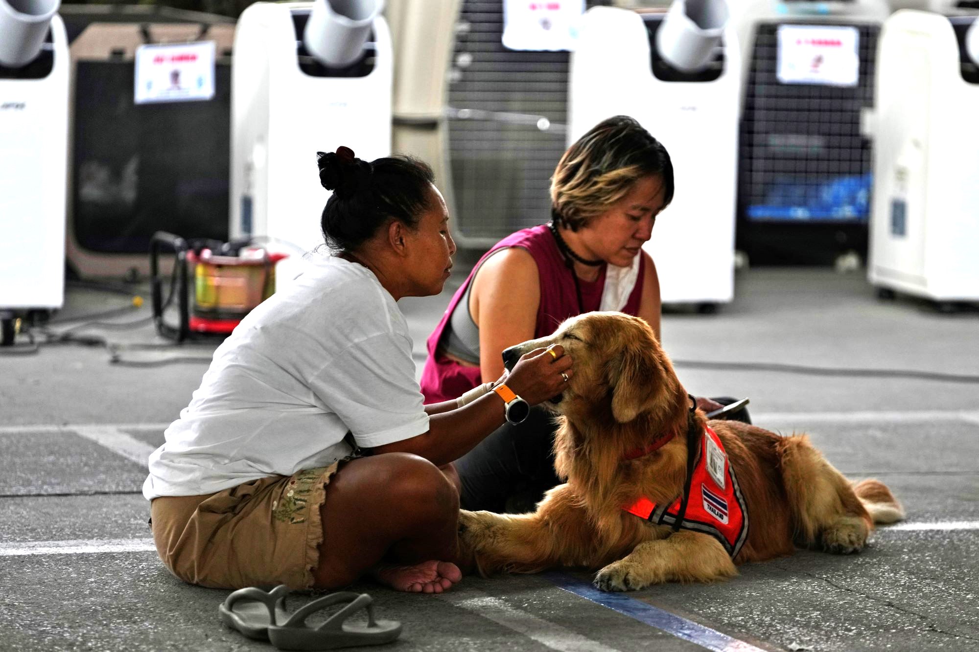 ํŠน์ˆ˜์š”์›์ด ํœด์‹์„ ์ทจํ•˜๊ณ  ์žˆ์Šต๋‹ˆ๋‹ค. ์ง€๋‚œ 2์ผ(ํ˜„์ง€์‹œ๊ฐ„) ํƒ€์ด ๋ฐฉ์ฝ• ์ง€์ง„ ํ˜„์žฅ์—์„œ ๋งนํ™œ์•ฝํ•˜๋Š” ๊ตฌ์กฐ๊ฒฌ์ธ๋ฐ์š”. ๊ณ ์ธต ๊ฑด๋ฌผ์ด ๋ฌด๋„ˆ์ง„ ํ˜„์žฅ์—์„œ ๊ตฌ์กฐ, ํƒ์ƒ‰ ์ž‘์—…์„ ๋งˆ์น˜๊ณ  ์™”๋Œ€์š”. ๋ฉ์นœ๊ตฌ๋“ค์€ ์ˆ˜์ƒ‰ ํ™œ๋™๋งŒ ํ•˜๋Š” ๊ฒŒ ์•„๋‹ˆ๋ผ ์‹ค์ข…์ž ๊ฐ€์กฑ์—๊ฒŒ ์œ„์•ˆ์„ ์ฃผ๋Š” ์—ญํ• ๋„ ํ•œ๋‹ค๋„ค์š”.