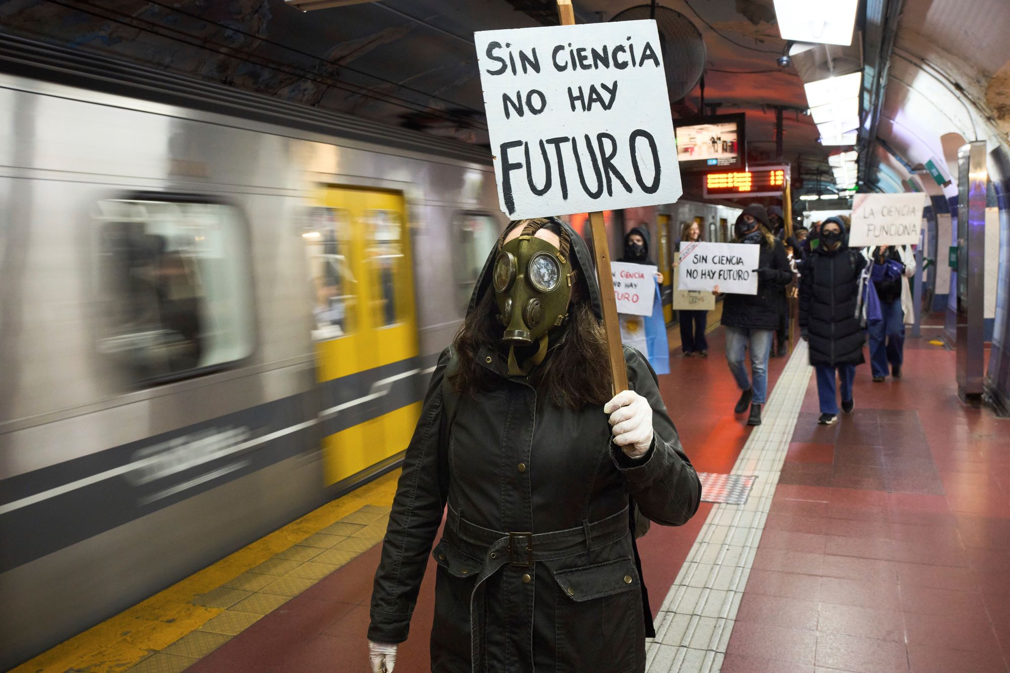 ์žฌ๋‚œ ์˜ํ™”์˜ ํ•œ ์žฅ๋ฉด ๊ฐ™์ฃ ? 28์ผ(ํ˜„์ง€์‹œ๊ฐ) ์•„๋ฅดํ—จํ‹ฐ๋‚˜ ๋ถ€์—๋…ธ์Šค์•„์ด๋ ˆ์Šค ์ง€ํ•˜์ฒ ์—ญ์—์„œ ๊ณผํ•™์ž๋“ค์ด ์ •๋ถ€์˜ ์ „๋ก€ ์—†๋Š” ๊ณผํ•™๊ธฐ์ˆ  ์˜ˆ์‚ฐ ์‚ญ๊ฐ์— ํ•ญ์˜ํ•˜๋Š” ์‹œ์œ„๋ฅผ ๋ฒŒ์ธ ๊ฑด๋ฐ์š”. ํŒป๋ง์—” '๊ณผํ•™ ์—†์ด๋Š” ๋ฏธ๋ž˜๋„ ์—†๋‹ค'๊ณ  ์“ฐ์—ฌ ์žˆ์Šต๋‹ˆ๋‹ค.