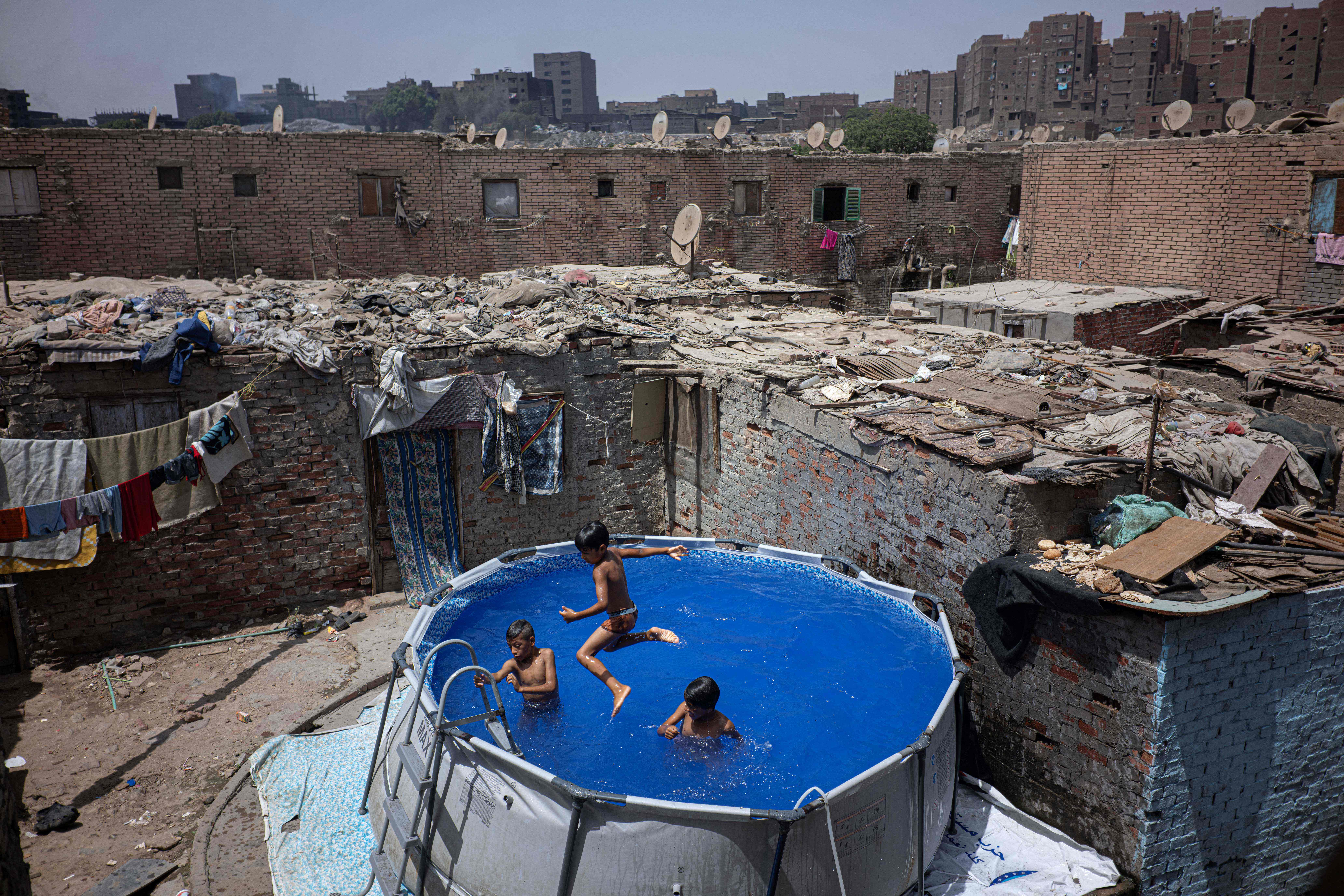 ์ง€๋‚œ 29์ผ(ํ˜„์ง€์‹œ๊ฐ) ์ด์ง‘ํŠธ ์ˆ˜๋„ ์นด์ด๋กœ์˜ ํ•œ ๋งˆ์„์—์„œ ์•„์ด๋“ค์ด ๋”์œ„๋ฅผ ์‹ํžˆ๊ณ  ์žˆ์Šต๋‹ˆ๋‹ค. ์ด๊ณณ์€ ์ด์ง‘ํŠธ ์ตœ๋Œ€ ๋นˆ๊ณค ์ง€์—ญ ๋งŒ์‰ฌ์•ผํŠธ ๋‚˜์„ธ๋ฅด์— ์žˆ๋Š” ์•Œ ๋‘์™€์ด์นด ๋งˆ์„์ธ๋ฐ์š”. ๋น„๋ก ๊ฐ„์ด ์ˆ˜์˜์žฅ์ด์ง€๋งŒ, 40๋„ ๊ฐ€๊นŒ์šด ํญ์—ผ ์†์—์„œ ์•„์ด๋“ค์˜ ์‹œ์›ํ•œ ํ”ผ๋‚œ์ฒ˜๊ฐ€ ๋˜๋ฉด ์ข‹๊ฒ ๋„ค์š”.