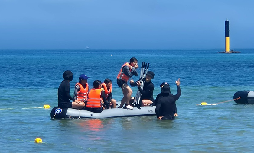 ์ดˆ๋“ฑํ•™๊ต 6ํ•™๋…„ ํ•™์ƒ์ด ์ฝ”๋ฅผ ๋ง‰๊ณ  ๋ฐ”๋‹ค์— ๋น ์งˆ ์ค€๋น„๋ฅผ ํ•ฉ๋‹ˆ๋‹ค. ์„ธ์›”ํ˜ธ ์ฐธ์‚ฌ ์ดํ›„ ์˜๋ฌด ๊ต์œก์ด ๋œ ์ƒ์กด์ˆ˜์˜์„ ๋ฐฐ์šฐ๋Š” ๊ฑด๋ฐ์š”. ์•ž๋งˆ๋‹น์ด ๋ฐ”๋‹ค์ธ ์ œ์ฃผ์—์„  ํ‰์ƒ๋ณต ์ž…๊ณ  ๋ฌผ์— ๋น ์กŒ์„ ๋•Œ ์ƒ์กด ๊ธฐ์ˆ ์„ ํ•ด๊ฒฝ·ํ•ด๋…€·ํ•ด๊ตฐํ•œํ…Œ ๋ฐฐ์šด๋‹ต๋‹ˆ๋‹ค.