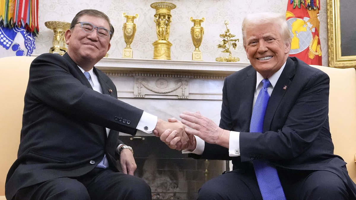 ์๋ฅผ ํ๊ณ ์๋ ์ด์๋ฐ ์๊ฒ๋ฃจ ์ผ๋ณธ ์ด๋ฆฌ์ ๋๋๋ ํธ๋ผํ ๋ฏธ๊ตญ ๋ํต๋ น ©KYODO |