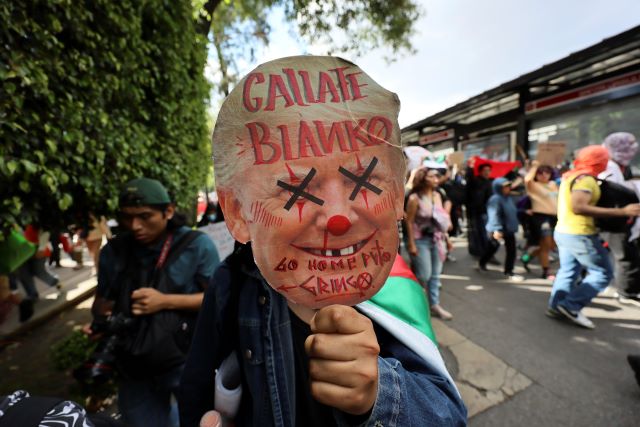 20์ผ(ํ˜„์ง€์‹œ๊ฐ) ๋ฉ•์‹œ์ฝ”์‹œํ‹ฐ์—์„œ ์  ํŠธ๋ฆฌํ”ผ์ผ€์ด์…˜(์›์ฃผ๋ฏผ ๋‚ด๋ชฐ๋ฆผ) ํ•ญ์˜ ์‹œ์œ„๊ฐ€ ์—ด๋ ธ์Šต๋‹ˆ๋‹ค. ํ•œ ์ฐธ๊ฐ€์ž๊ฐ€ ๋“ค๊ณ  ์žˆ๋Š” ํŠธ๋Ÿผํ”„ ๋Œ€ํ†ต๋ น ํƒˆ์—๋Š” "๋ฐฑ์ธ๋“ค์€ ์กฐ์šฉํžˆ ํ•˜๋ผ"๋Š” ๋‹ค์†Œ ๊ฐ์ •์ ์ธ ๋ฌธ๊ตฌ๊ฐ€ ์ ํ˜€ ์žˆ๋Š”๋ฐ์š”. ์š”์ฆ˜ ๋ฉ•์‹œ์ฝ”์‹œํ‹ฐ๋Š” ๋ฏธ๊ตญ·์œ ๋Ÿฝ ๋””์ง€ํ„ธ ๋…ธ๋งˆ๋“œ์˜ ์ด์ฃผ์ง€๋กœ ๊ด€์‹ฌ๋ฐ›์œผ๋ฉด์„œ ์ง‘๊ฐ’์ด ์˜ค๋ฅด๊ณ  ์žˆ์Šต๋‹ˆ๋‹ค.
