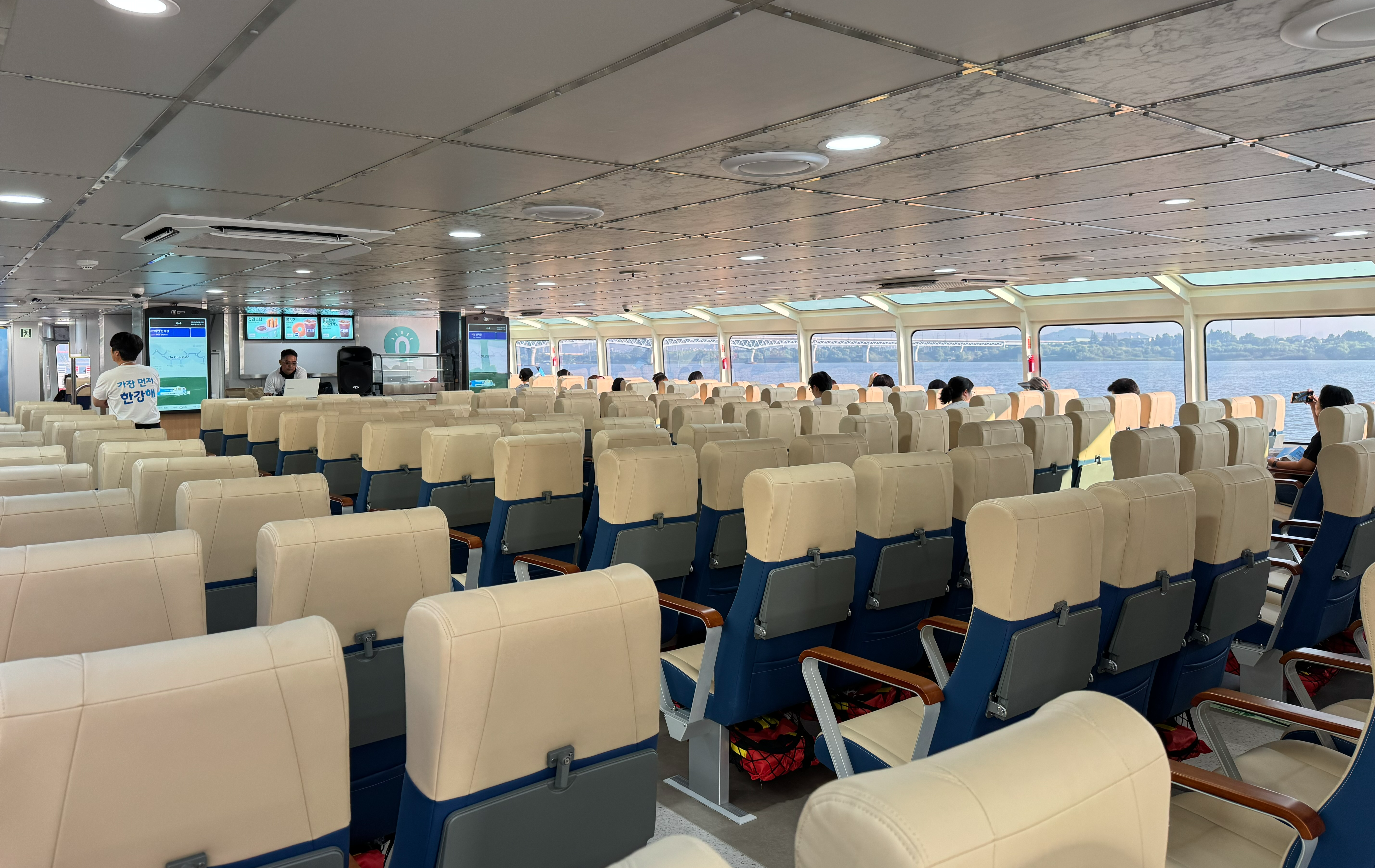 ์„œ์šธ ๋งˆ๊ณก์—์„œ ์ž ์‹ค๊นŒ์ง€ ํ•œ๊ฐ•์„ ๊ฐ€๋กœ์ง€๋ฅด๋Š” 'ํ•œ๊ฐ•๋ฒ„์Šค'๊ฐ€ ์‹œ๋ฒ” ์šดํ•ญ ์ค‘์ด์ฃ . ์„œ์šธ์‹œ์—์„  ์—ญ์—์„œ ์„ ์ฐฉ์žฅ๊นŒ์ง€ ๊ฐ€๋Š” ๋ฌด๋ฃŒ ์…”ํ‹€๋ฒ„์Šค๋„ ์šดํ–‰ํ•˜๋Š”๋ฐ์š”. '๊ธ‰ํ–‰ ์„ ๋ฐ•'์„ ํƒ€๊ณ  ๋งˆ๊ณก์—์„œ ์—ฌ์˜๋„๊นŒ์ง€ ์‹œ๋ฏผ๋“ค๊ณผ ํ•จ๊ป˜ ์ถœ๊ทผํ•ด๋ดค์Šต๋‹ˆ๋‹ค.