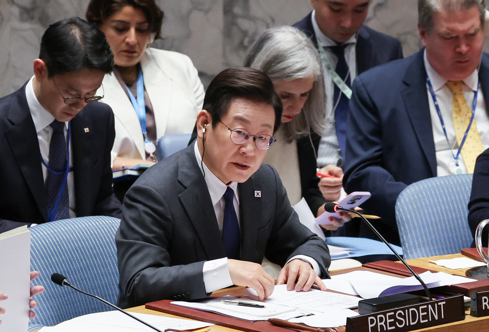 24์ผ(ํ˜„์ง€์‹œ๊ฐ) ์ด์žฌ๋ช… ๋Œ€ํ†ต๋ น์ด ๋ฏธ๊ตญ ์œ ์—”๋ณธ๋ถ€์—์„œ ํ•œ๊ตญ ๋Œ€ํ†ต๋ น ์ตœ์ดˆ๋กœ ์•ˆ๋ณด๋ฆฌ ํšŒ์˜๋ฅผ ์ด๋Œ์—ˆ์ฃ . ์ „๋‚  ๋ฐค ๋„๋„๋“œ ํŠธ๋Ÿผํ”„ ๋Œ€ํ†ต๋ น์ด ์—ฐ ์ •์ƒ ๋งŒ์ฐฌ์—” ๋ถˆ์ฐธํ–ˆ๋‹ค๋Š”๋ฐ์š”. ์ •์น˜์  ๊ณ„์‚ฐ์ด ๋‹ด๊ฒจ์žˆ๋‹จ ํ•ด์„์ด ๋‚˜์˜ต๋‹ˆ๋‹ค.(์—ฐํ•ฉ)