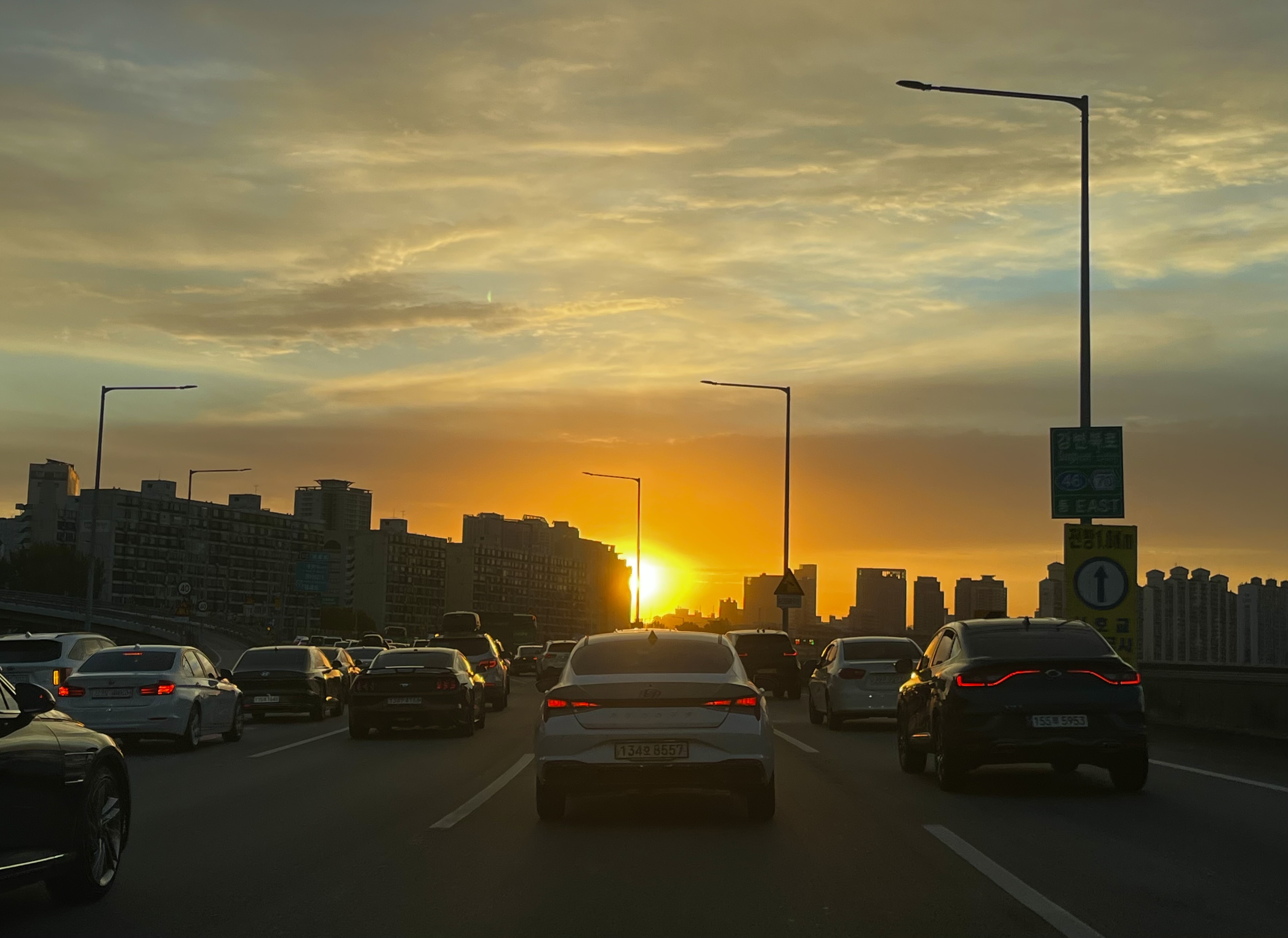 ์ด ๋งŽ์€ ์ž๋™์ฐจ ์† ์‚ฌ๋žŒ ์ค‘์— 'ํ•ด๊ฐ€ ๋œจ๋Š”๊ตฌ๋‚˜'๋ผ๊ณ  ์ƒ๊ฐํ•˜๊ณ  ์ด ์žฅ๋ฉด์„ ๋ฐ”๋ผ๋ณธ ์‚ฌ๋žŒ์€ ๋ช‡์ด๋‚˜ ๋ ๊นŒ์š”? ์ „๋ฐฉ์ฃผ์‹œ ํ•˜๋А๋ผ, ์ฐจ์„  ๋ฐ”๊พธ๋А๋ผ ์•„์˜ˆ ๋ชป ๋ณด๊ณ  ์ง€๋‚˜์น˜๋Š” ์‚ฌ๋žŒ๋“ค๋„ ์žˆ์—ˆ๊ฒ ์ฃ ? ์–ด๋–ป๋“ , ์šฐ๋ฆฌ๋Š” ์ถœ๊ทผ ์‹œ๊ฐ„ ํ•ด ๋œจ๋Š” ๊ฐ•๋ณ€๋ถ๋กœ์— ํ•จ๊ป˜ ์žˆ์—ˆ์Šต๋‹ˆ๋‹ค. ๋‹ค์Œ์— ๋˜ ๊ทธ ์‹œ๊ฐ„ ๊ทธ ์ž๋ฆฌ์—์„œ ๋งŒ๋‚˜๋ฉด, ๊ทธ๋• ํ•ด ๋ณด๋ฉด์„œ ๊ฐ™์ด ๋ฉ๋•Œ๋ ค์š”~