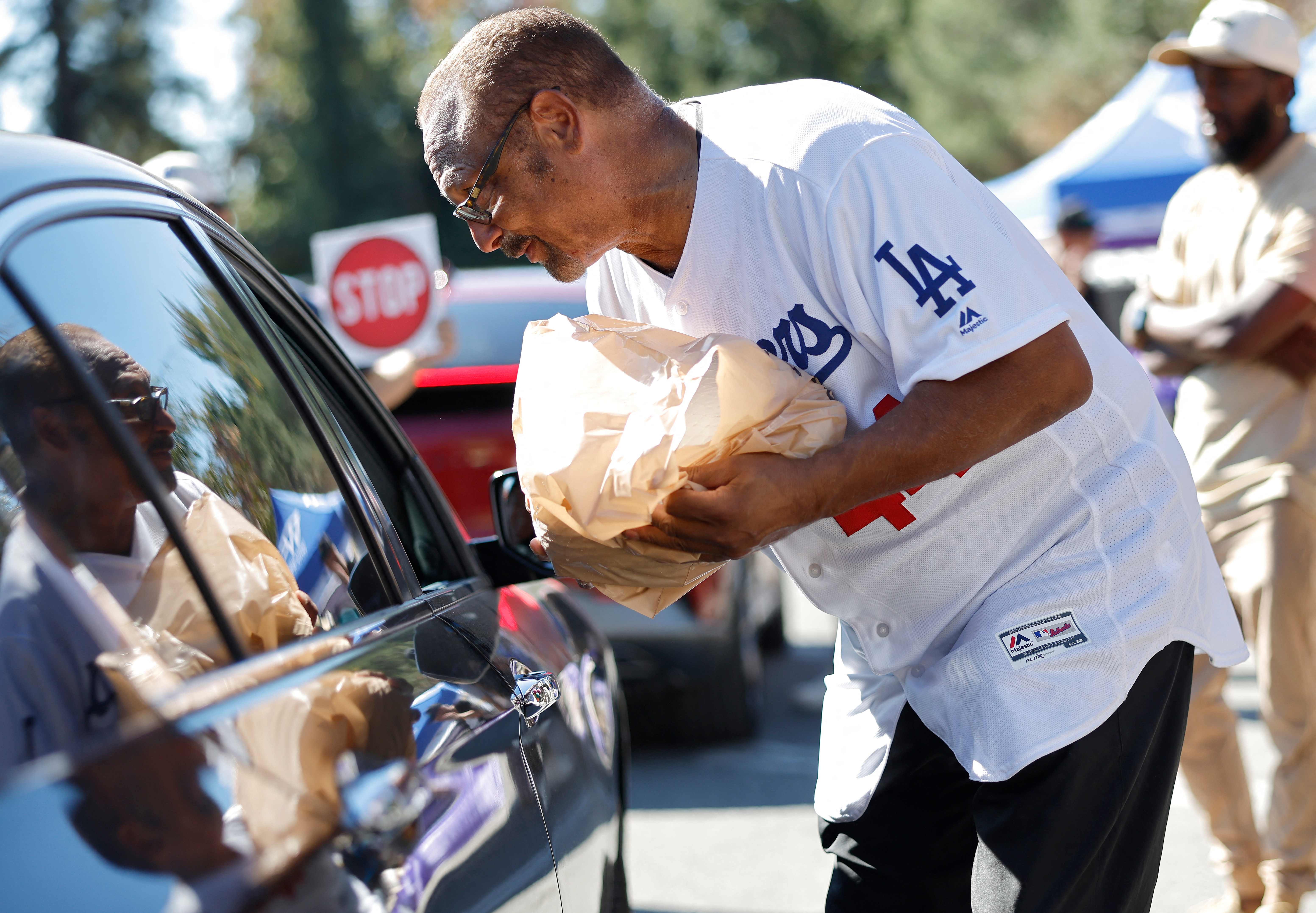 ์ง€๋‚œ 8์ผ(ํ˜„์ง€์‹œ๊ฐ) ๋ฏธ๊ตญ ์บ˜๋ฆฌํฌ๋‹ˆ์•„์ฃผ ์•Œํƒ€๋””๋‚˜์—์„œ ์ „ LA๋‹ค์ €์Šค ์„ ์ˆ˜ ์ผ„ ๋žœ๋“œ๋กœ๊ฐ€ ์ถ”์ˆ˜๊ฐ์‚ฌ์ ˆ์„ ์•ž๋‘๊ณ  ์น ๋ฉด์กฐ ์š”๋ฆฌ๋ฅผ ์ „๋‹ฌํ•˜๊ณ  ์žˆ์Šต๋‹ˆ๋‹ค. 39์ผ์งธ ์ด์–ด์ง„ ๋ฏธ ์—ฐ๋ฐฉ์ •๋ถ€ ์…ง๋‹ค์šด์œผ๋กœ ์‹ํ’ˆ๋ณด์กฐ๊ธˆ ์ง€๊ธ‰๊นŒ์ง€ ์ค‘๋‹จ๋˜์ž, '๋“œ๋ผ์ด๋ธŒ ์Šค๋ฃจ' ์Œ์‹ ๋‚˜๋ˆ” ํ–‰์‚ฌ๊ฐ€ ์—ด๋ฆฐ ๊ฑด๋ฐ์š”. ์•Œํƒ€๋””๋‚˜๋Š” ์ง€๋‚œ 1์›” LA ๋Œ€ํ˜• ์‚ฐ๋ถˆ๋กœ ํ”ผํ•ด๋ฅผ ์ž…์€ ๊ณณ์ž…๋‹ˆ๋‹ค.
